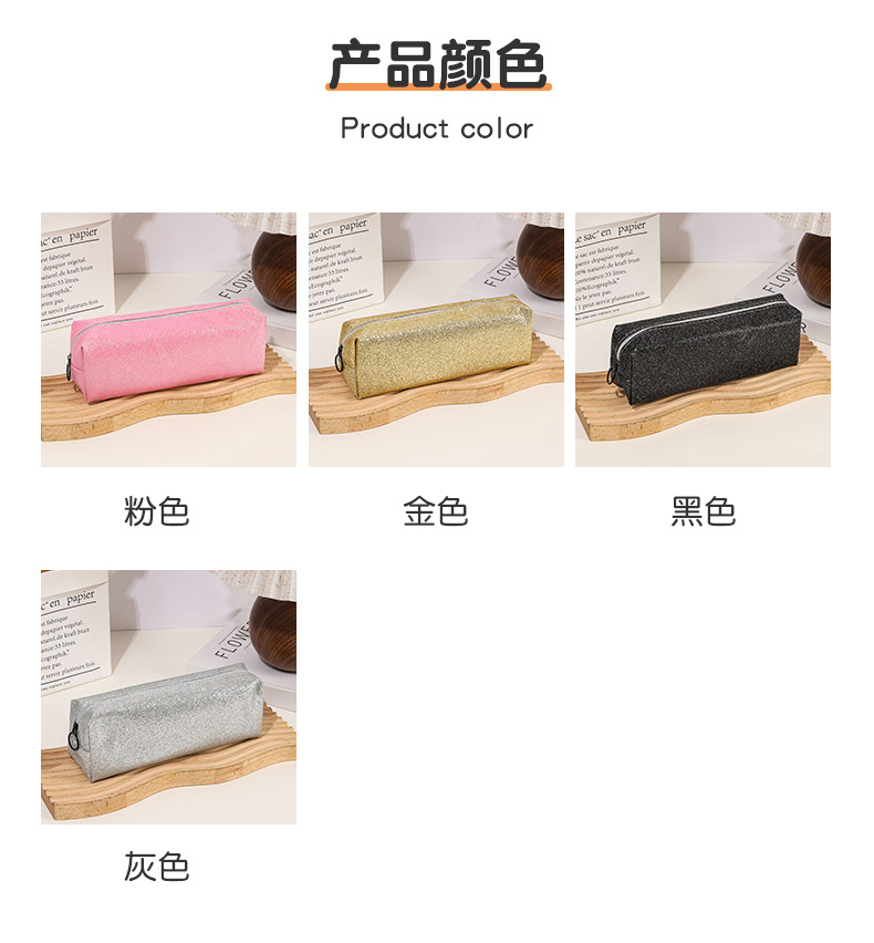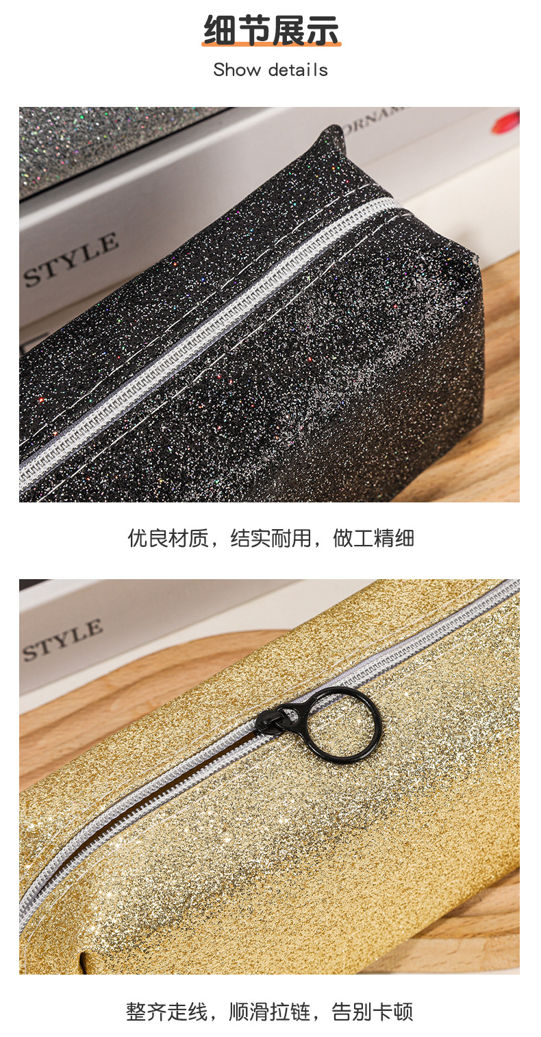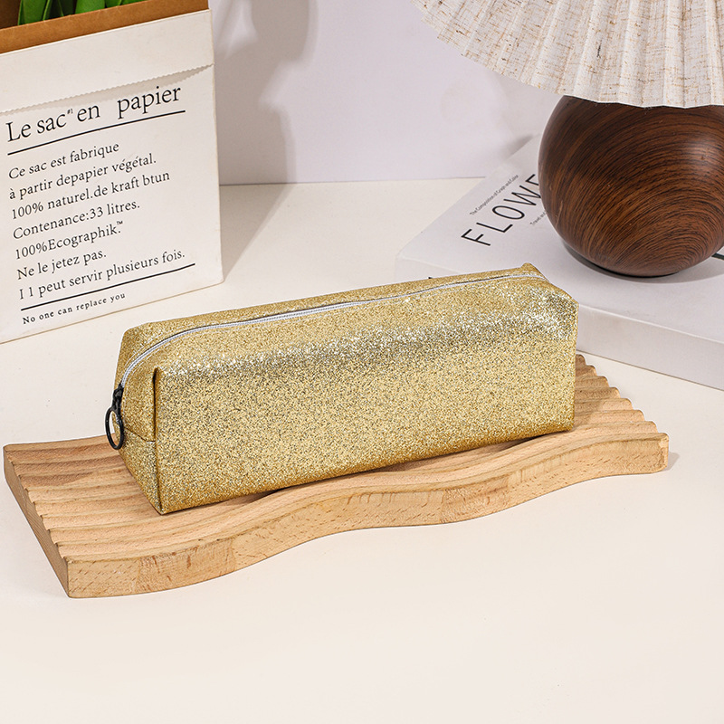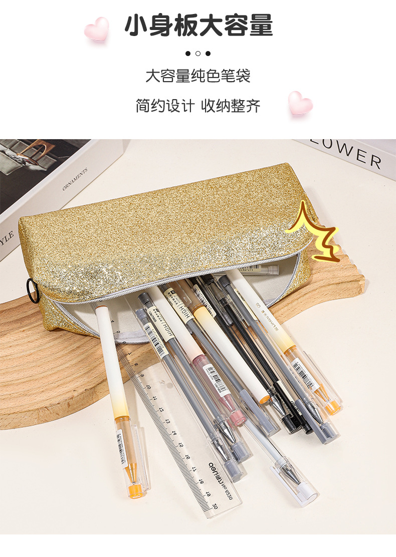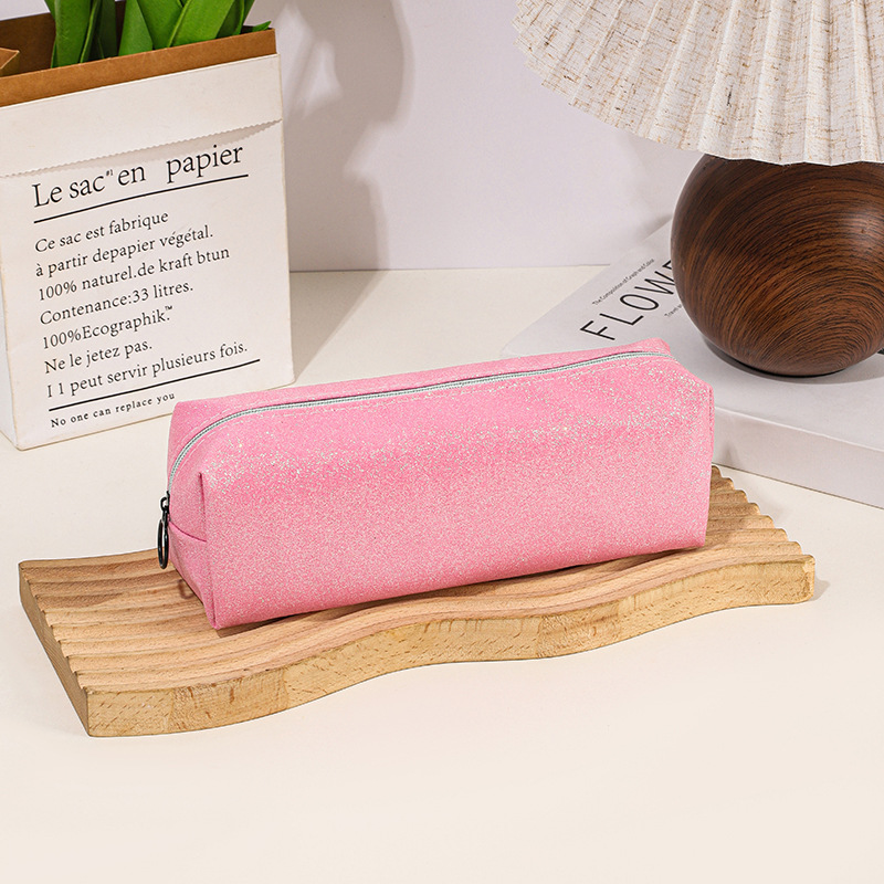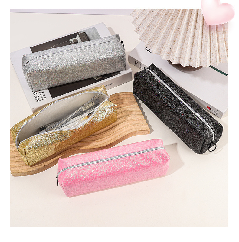 새로운 PU 단색 반짝이 펜 케이스, 제조업체 직송, 학생용 대용량, 오염 방지, 휴대용 문구 가방, 연필 케이스