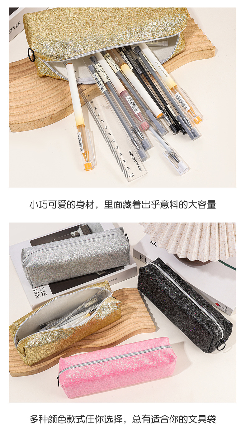 새로운 PU 단색 반짝이 펜 케이스, 제조업체 직송, 학생용 대용량, 오염 방지, 휴대용 문구 가방, 연필 케이스스토어 가기