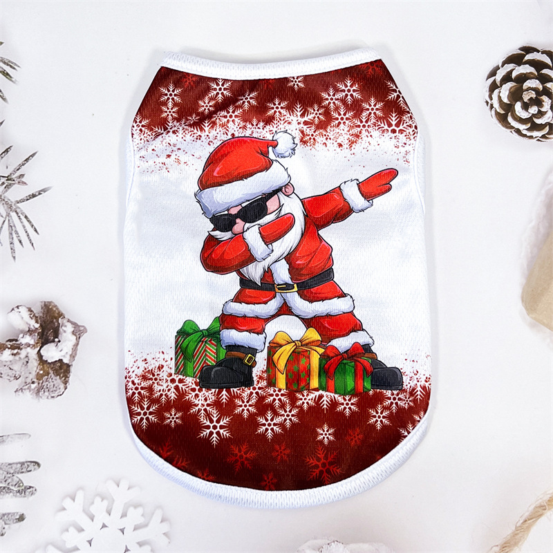 국경 간 TEMU 개 옷 크리스마스 비극 조끼 작고 중간 크기의 개 통기성 끈적 끈적한 고양이 두 다리 옷
