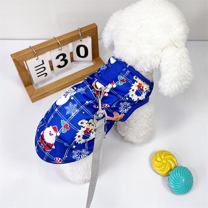 • 애완동물 크리스마스 조끼 [파란색 배경의 산타클로스]