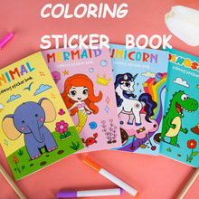 跨境儿童涂色贴纸书3-6岁启蒙早教涂色本diy图画本主题活动画画本