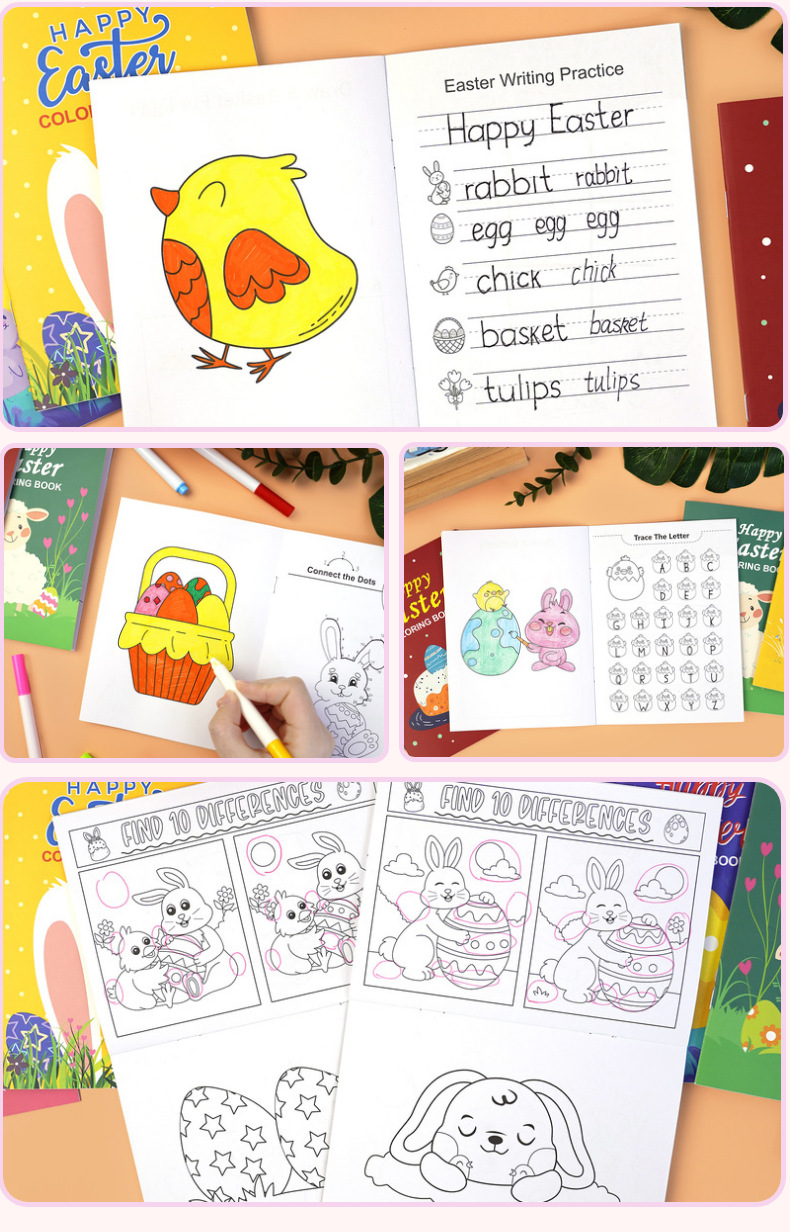 跨境新品儿童复活节涂色本答题涂色游戏涂色书3-6岁画画本绘画本