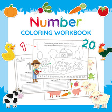 跨境数字练习册涂色本带贴纸儿童涂色书3-6岁图画本diy早教画画本