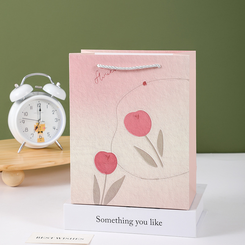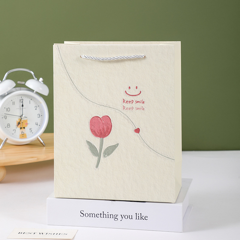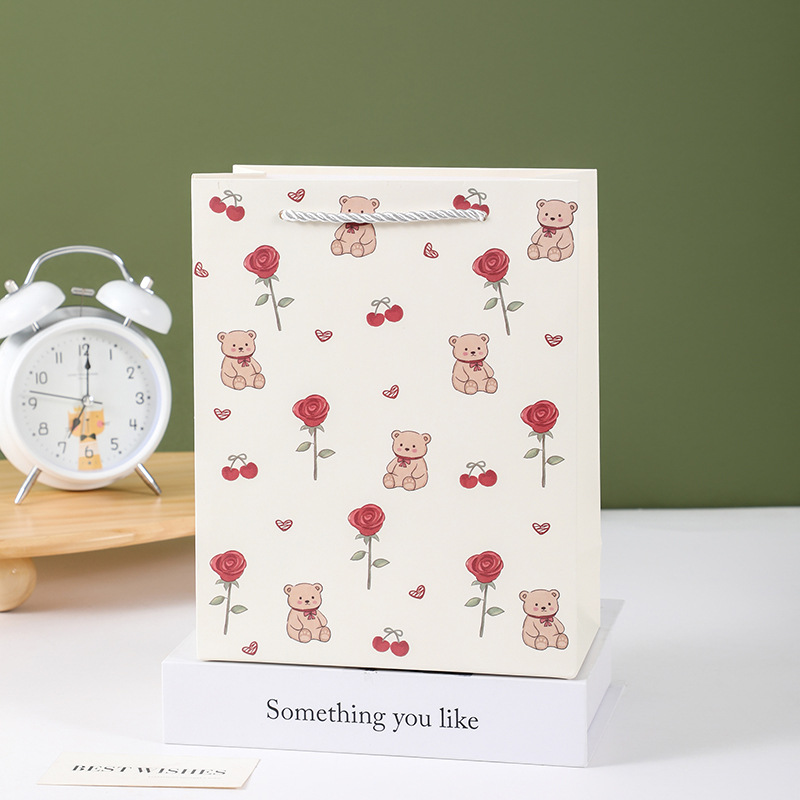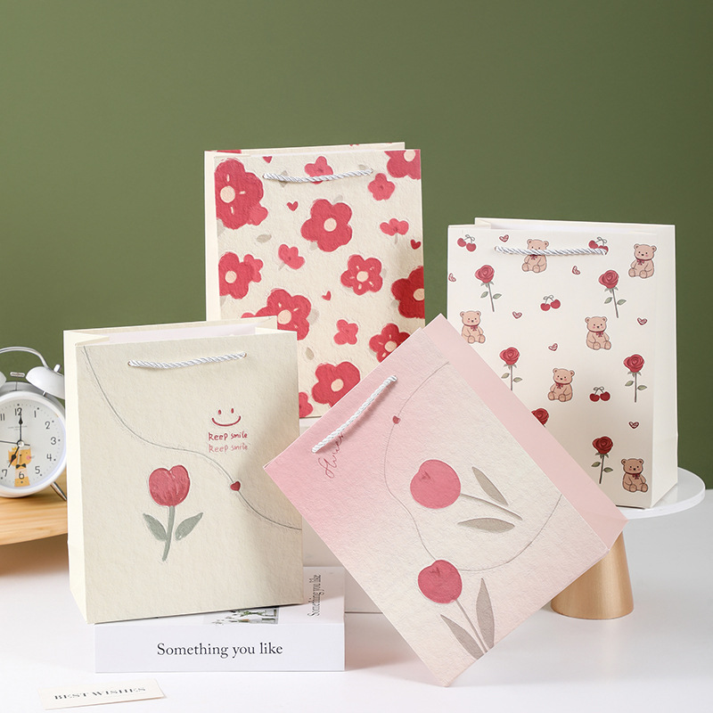 핑크 만화 귀여운 절묘한 흰색 골판지 선물 가방 학생 생일 선물 선물 휴대용 포장 종이 가방