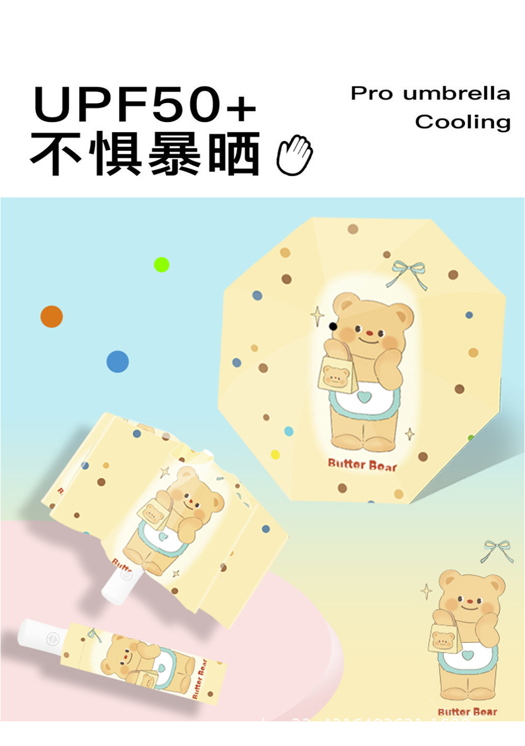 Ins 버터 베어 맑고 비 이중 사용 디지털 인쇄 반음영 선 스크린 햇빛 그늘 까르토 우산