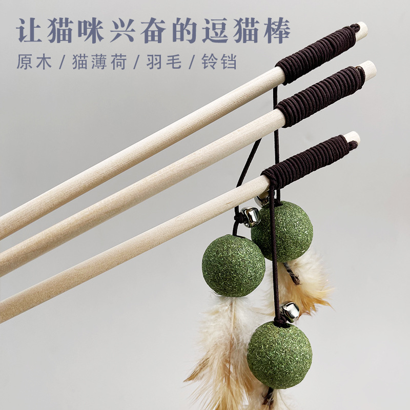 나무 기둥 고양이 장난감 원래 나무 수제 깃털 벨 새로운 애완 동물 고양이 용품 고양이 장난감