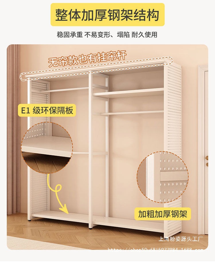 홀 코트 랙 간단한 옷장 바닥-스탠딩 가정용 침실 금속 철 오픈 스타일 스토리지 조합 임대 룸