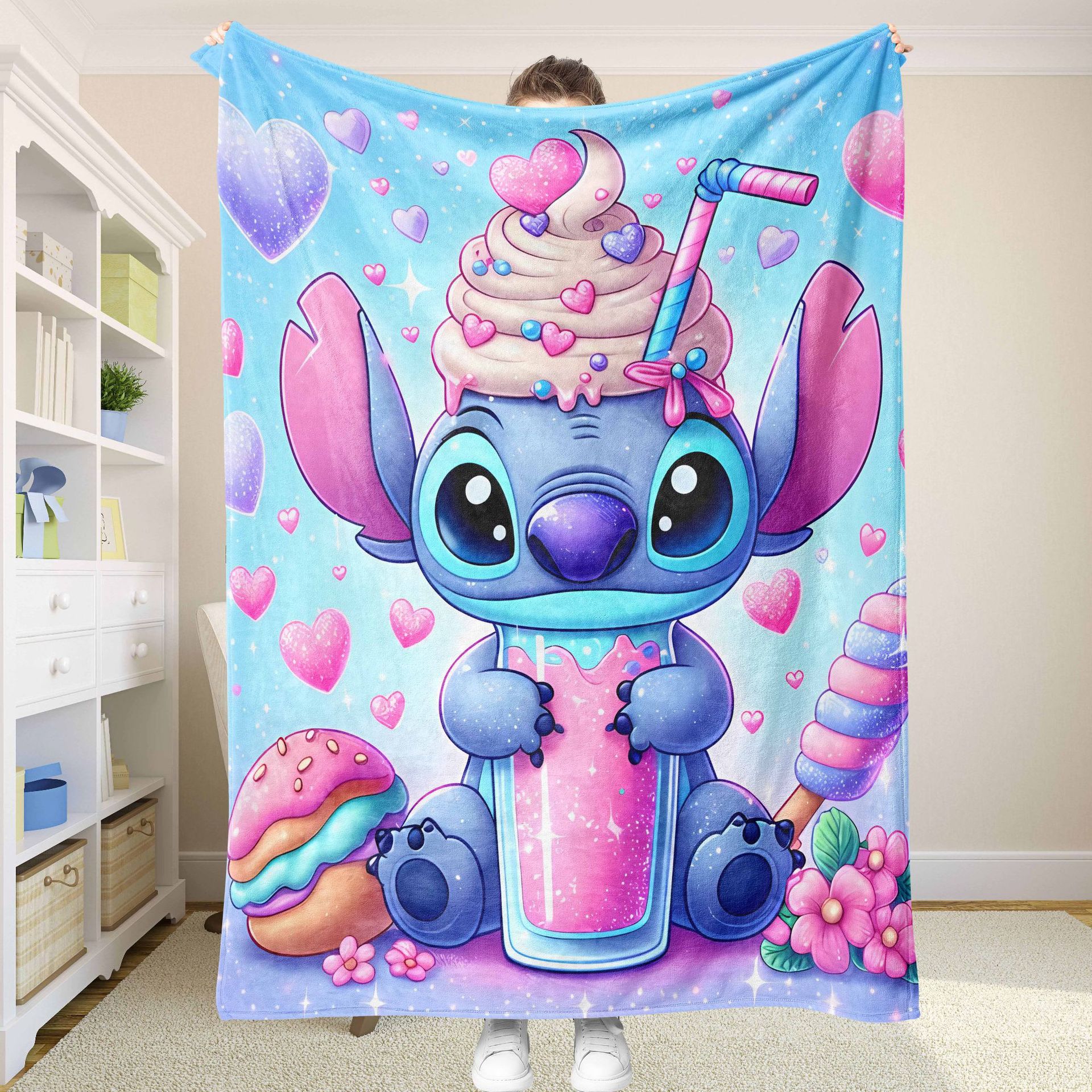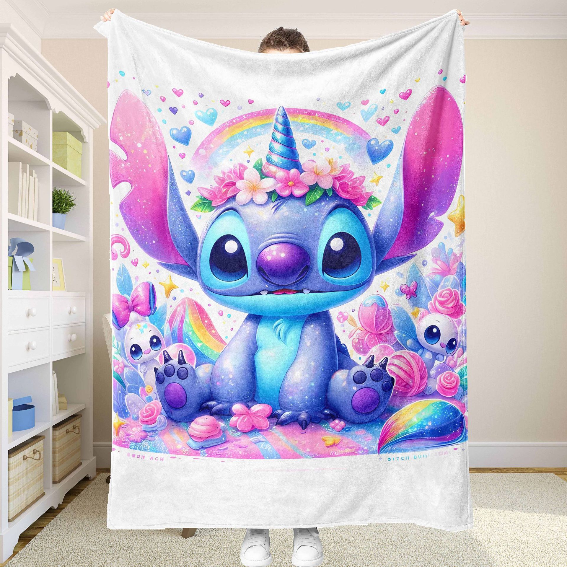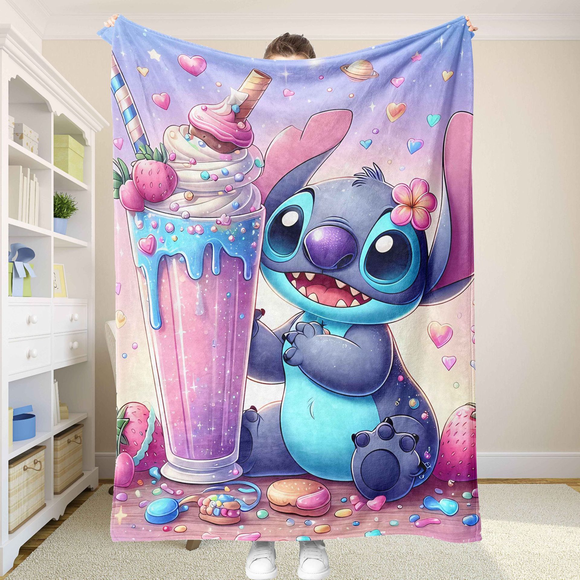 아마존 만화 스티치 스티치 플란넬 담요 디지털 인쇄 담요 애니메이션 낮잠 담요 커버 담요