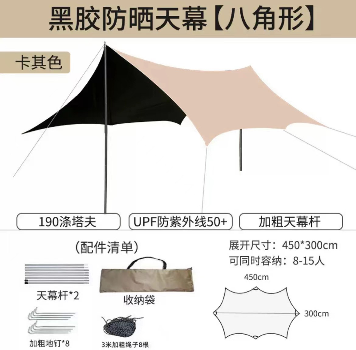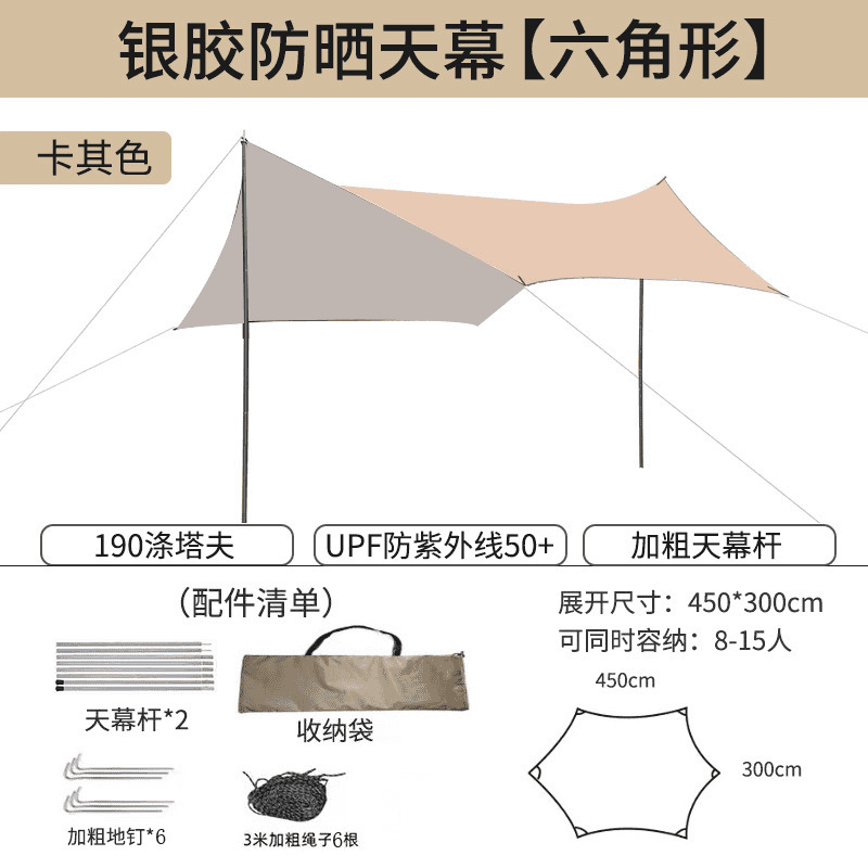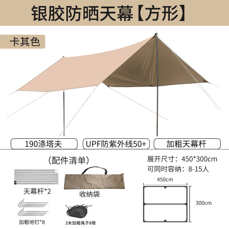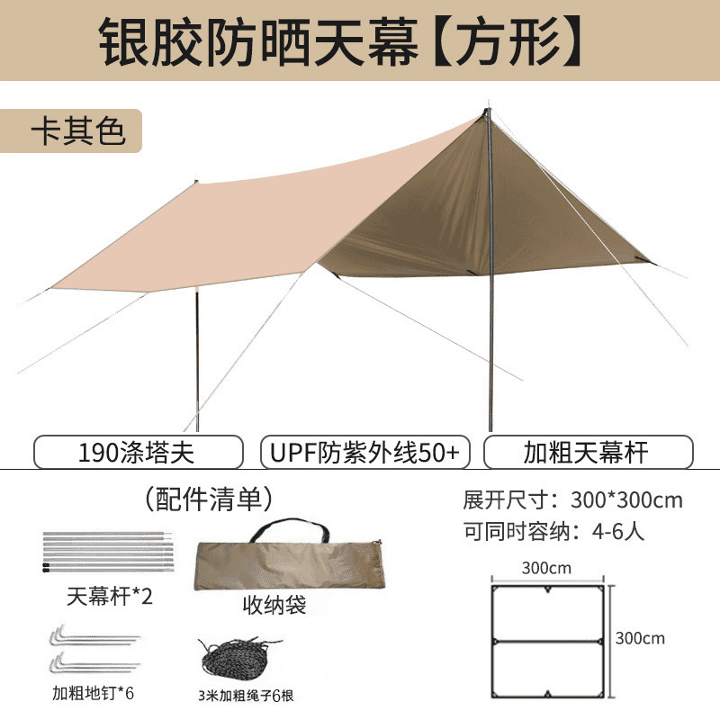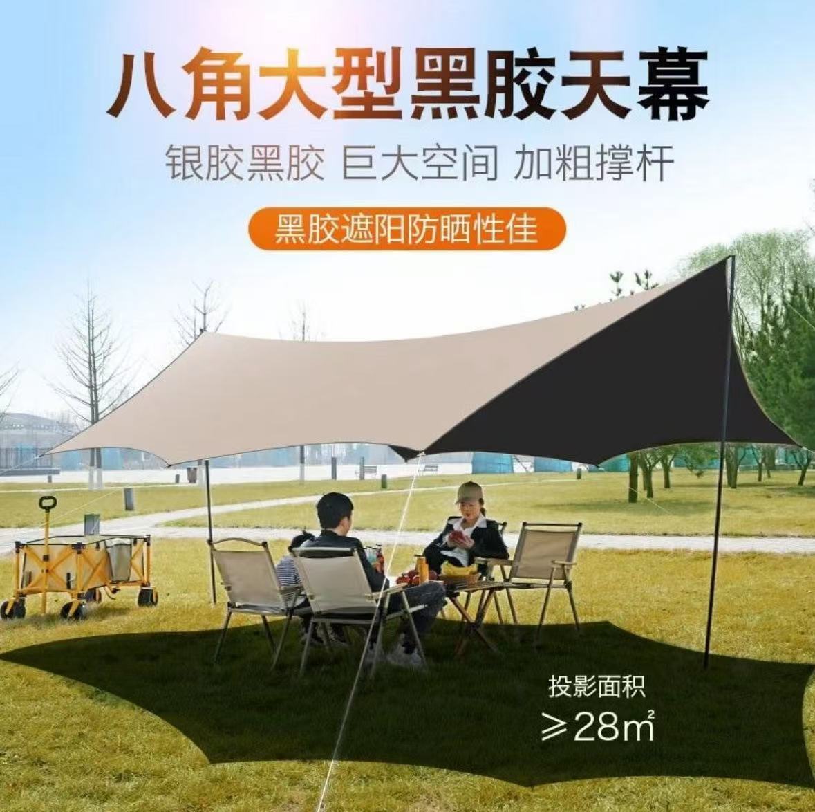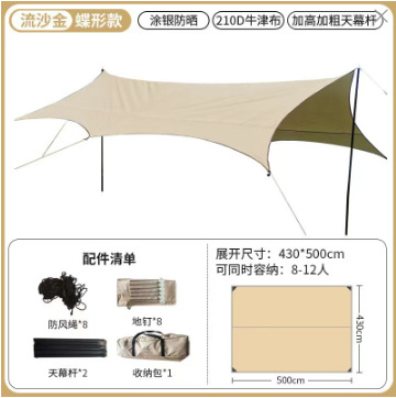 오픈 필드 물고기 야외 검은 접착제 실버 접착제 캐노피 텐트 야외 캠핑 선 스크린 비치 큰 햇빛 나비 장비