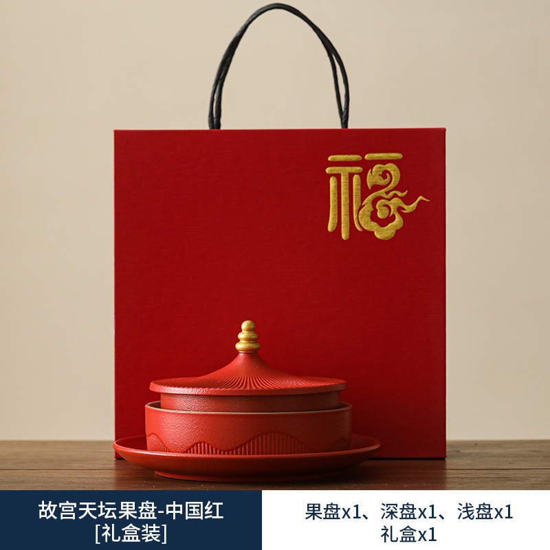 故宫国潮文创天坛果盘八一送党员礼物家用盘子新婚礼品礼盒