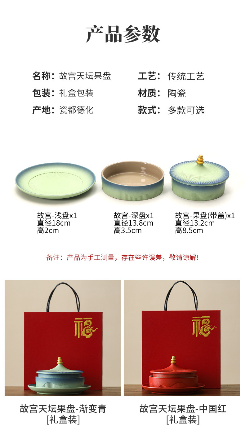 황궁 Guochao Wenchuang Tiantan 과일 플레이트 Bayi 파티 회원 선물 가정용 플레이트 웨딩 선물 상자스토어 가기