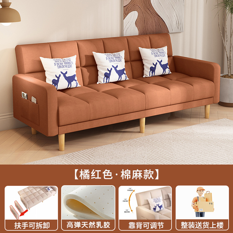 패브릭 접이식 소파 침대 듀얼 사용 작은 아파트 거실 2024 도매 간단한 현대 3 인승 임대 룸 소파