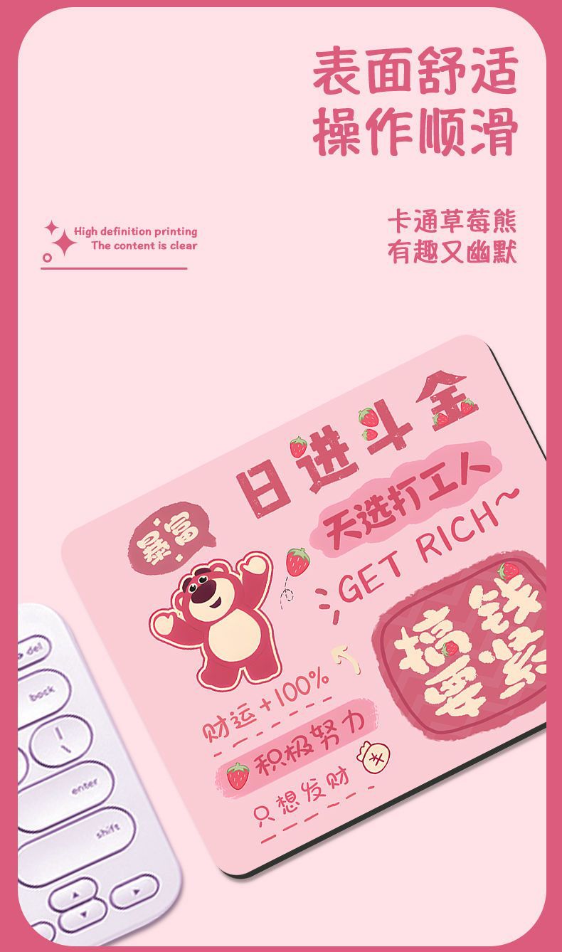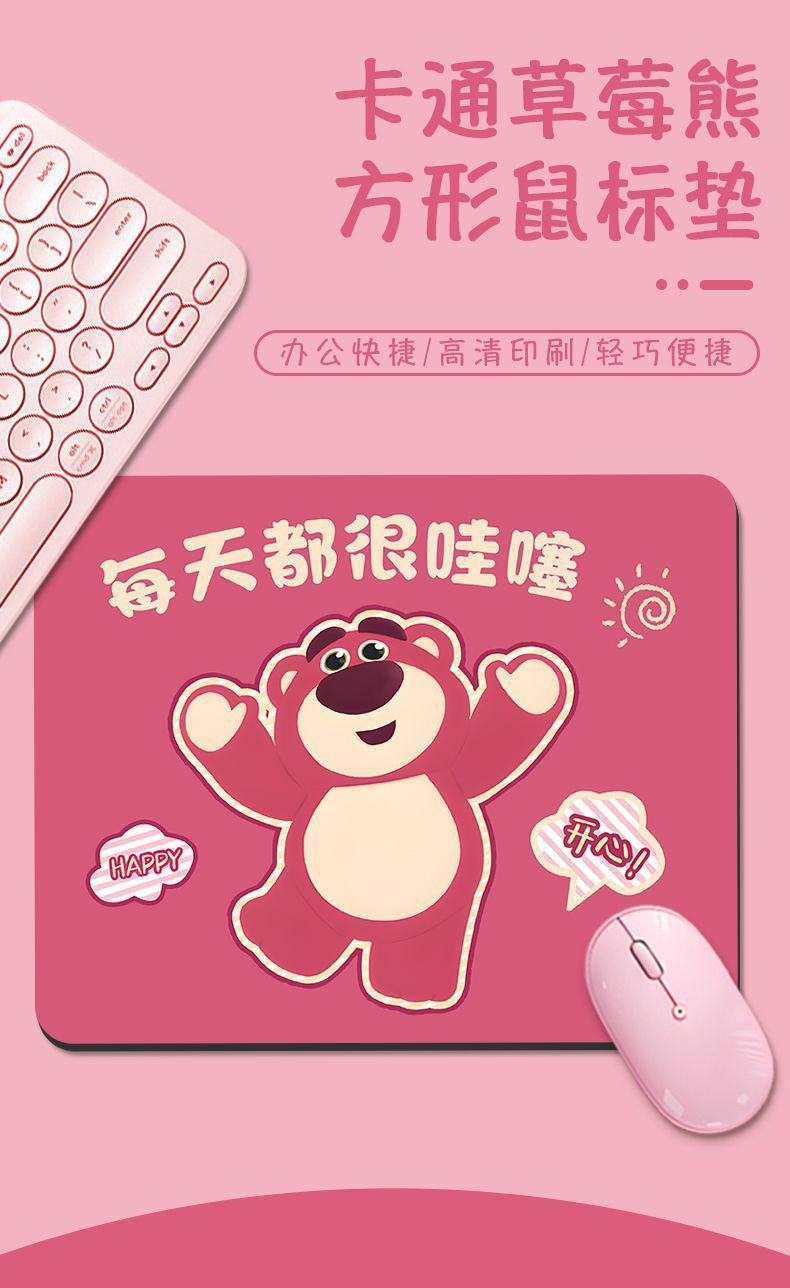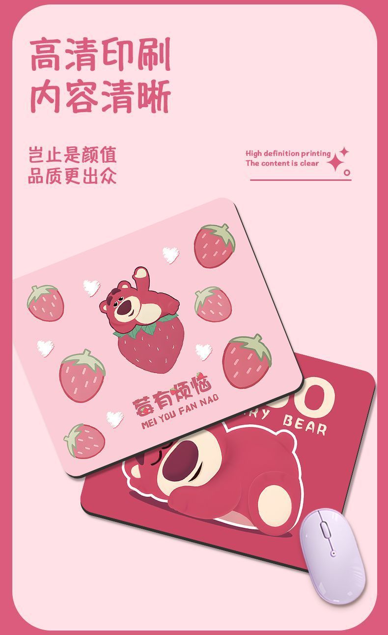 딸기 곰 마우스 패드 학생 책상 패드 스몰 사이즈 귀여운 Carto 책상 컴퓨터 두꺼운 키보드 데스크탑 패드스토어 가기