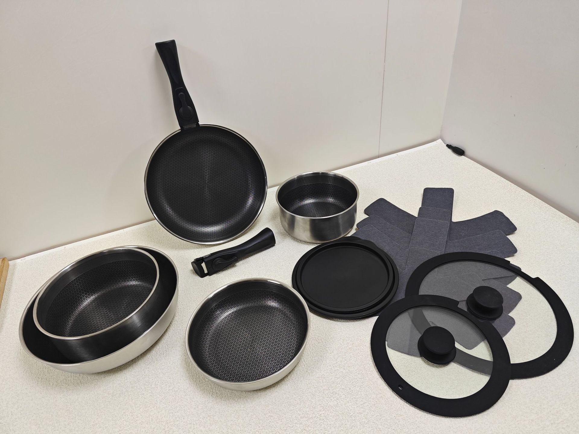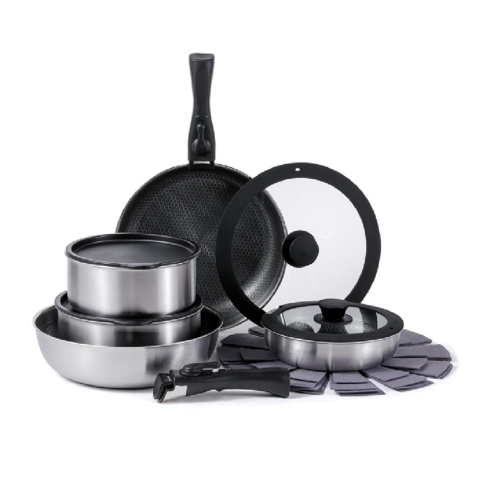15件套(锅*5+硅胶玻璃盖*2+冰箱盖*2+毛毡垫*4可拆卸手柄*2)