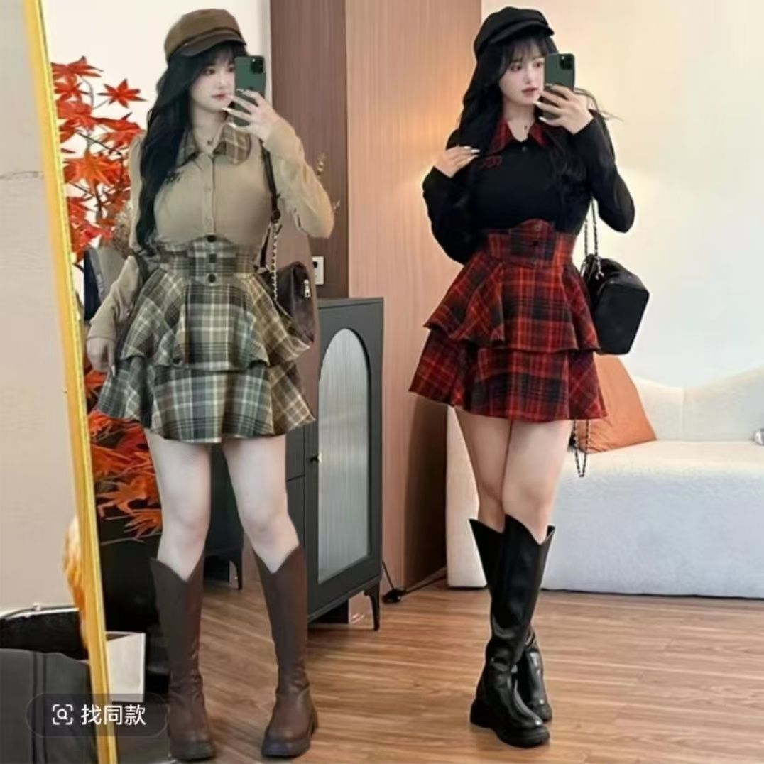 약간의 뚱뚱한 mm 순수한 바람 JK 유니폼 세트 셔츠 최고 격자 무늬 높은 허리 스커트 2024 새로운 세트 슬림 여성스토어 가기