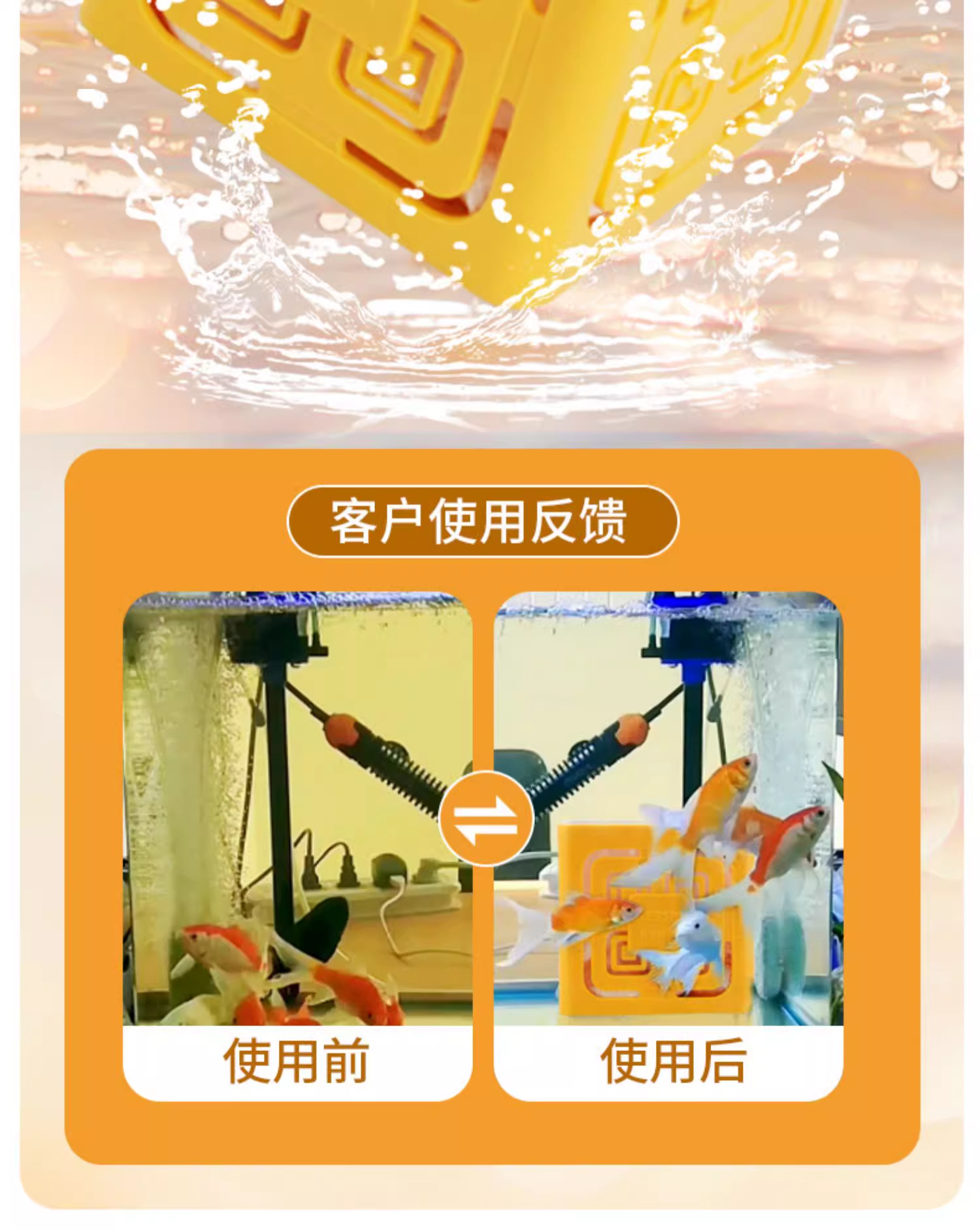• 물의 황변을 제거하고 180개 이상의 수조에 적합합니다.