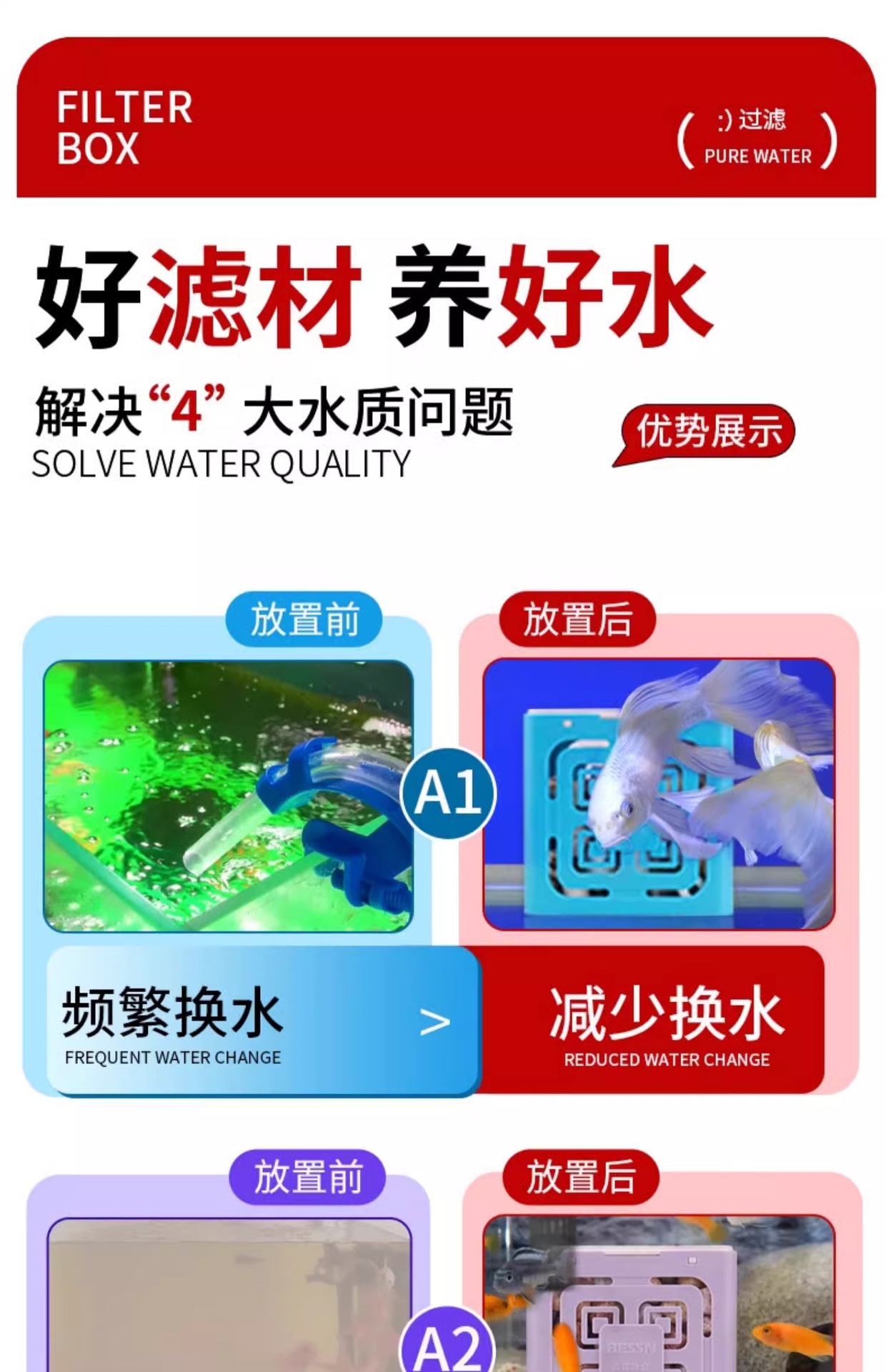 Besson BESSN 물 정화 Rubik의 큐브 상자 생선 탱크 필터 재료 활성 탄소 단백질 면화 박테리아 하우스