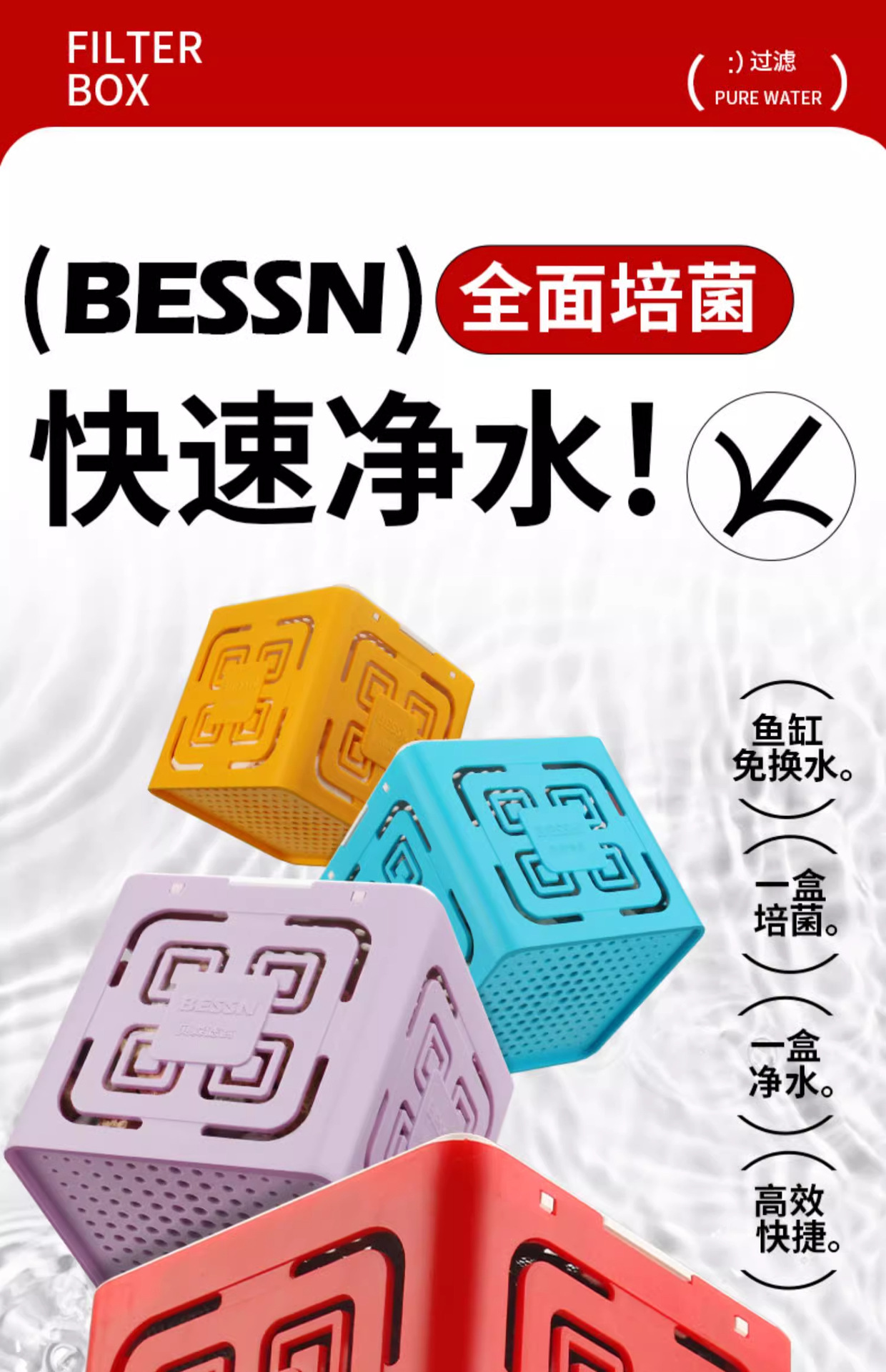 Besson BESSN 물 정화 Rubik의 큐브 상자 생선 탱크 필터 재료 활성 탄소 단백질 면화 박테리아 하우스스토어 가기