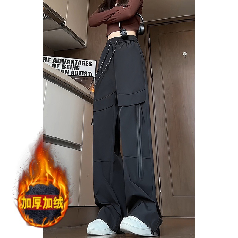 아메리칸 스타일 블랙 크록 바지 여성용 가을과 겨울 작은 기모 두꺼운 바지 방수 방풍 야외 등산 바지