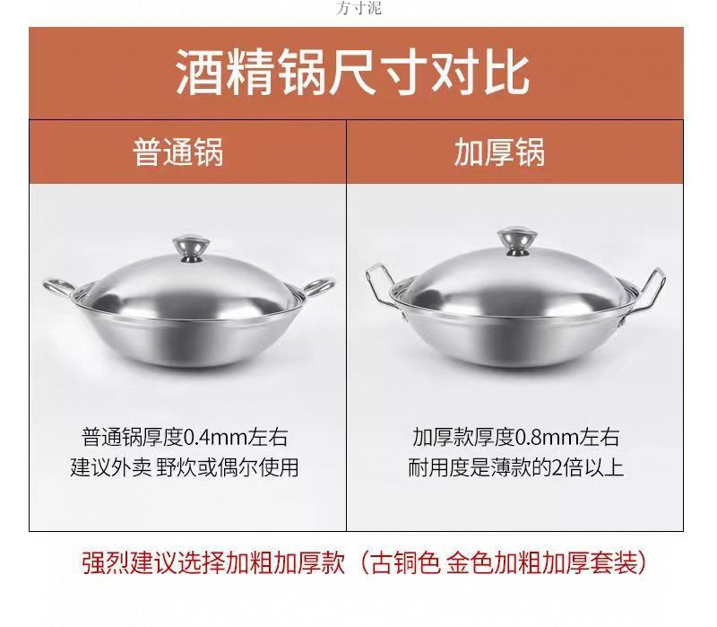 알코올 스토브 고체 액체 두꺼운 스테인레스 스틸 작은 냄비 건조 냄비 가정용 학생 기숙사 휴대용 건조 보일러
