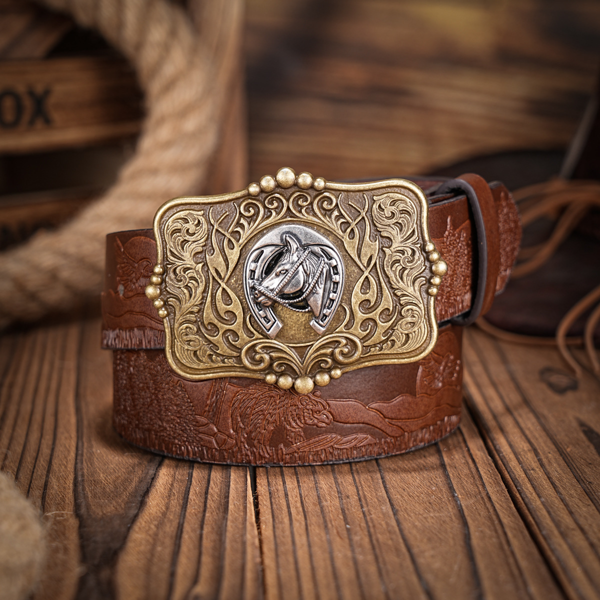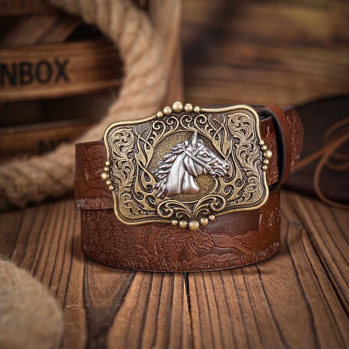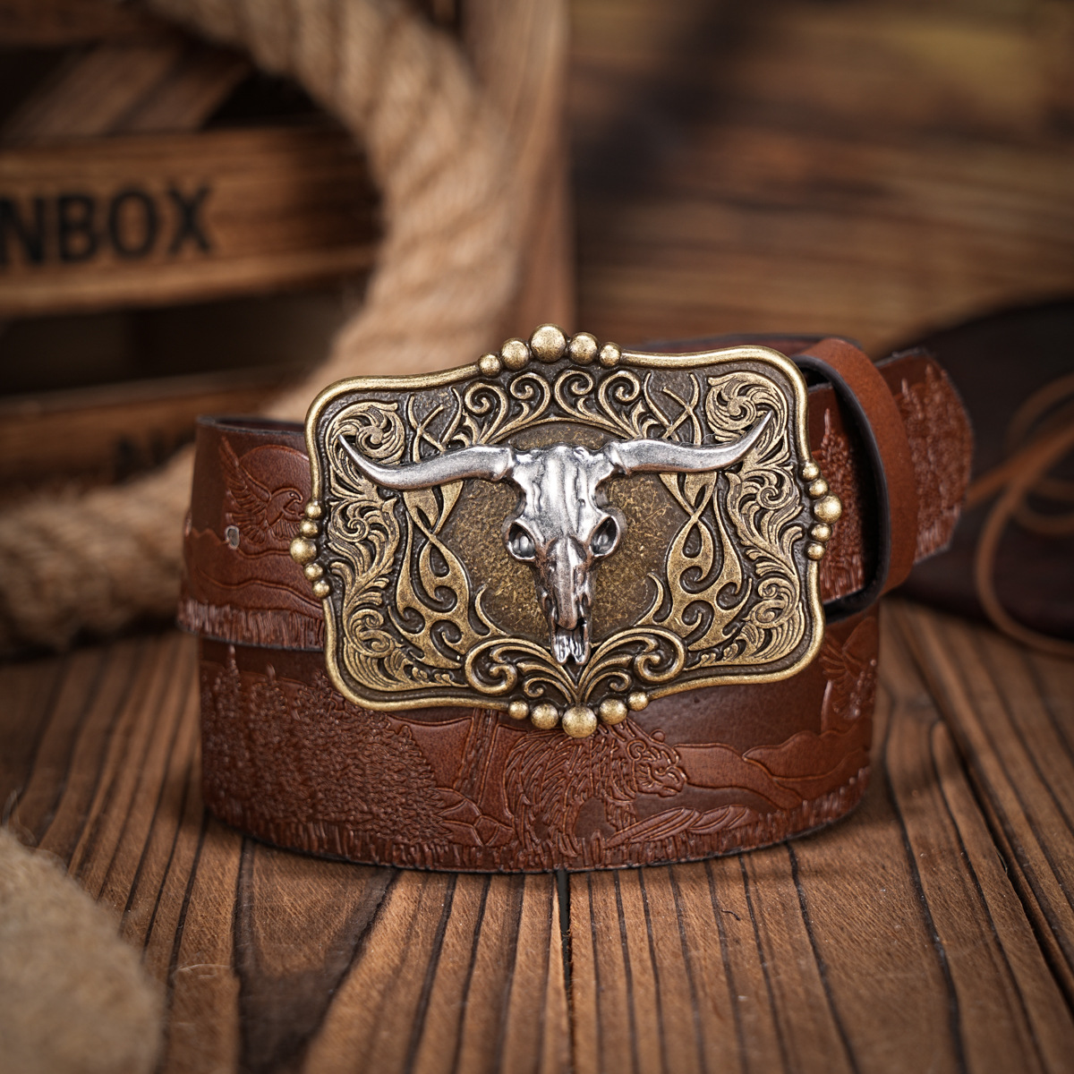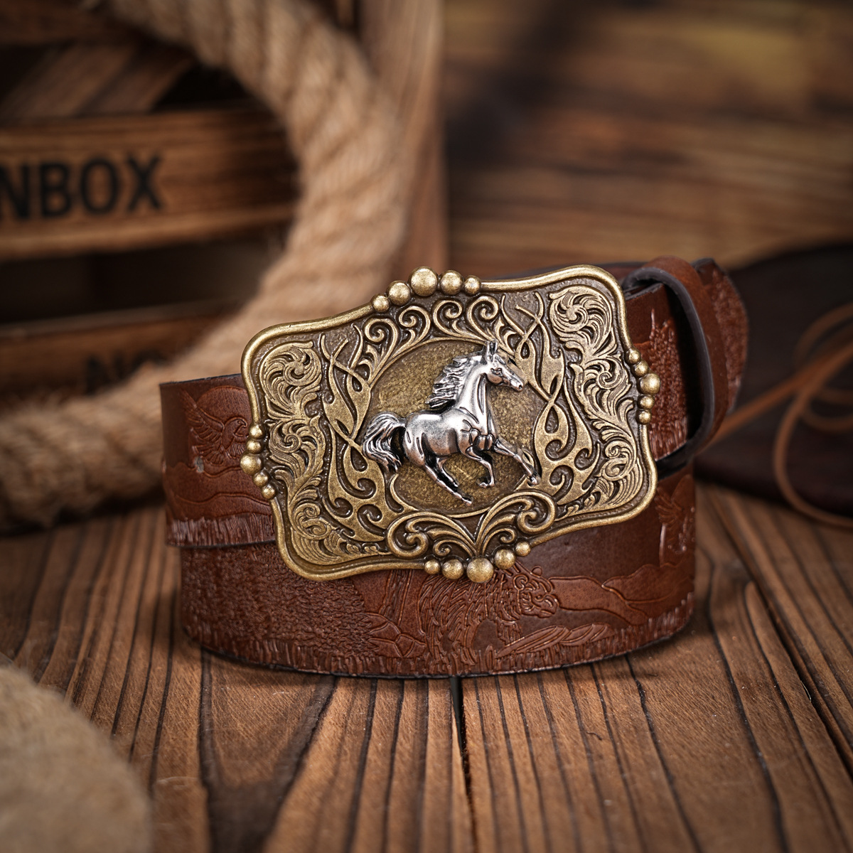 국경 간 새로운 서부 데님 벨트 아마존 국경 대형 플레이트 버클 레트로 남성 펑크 가죽 벨트 민족 스타일스토어 가기