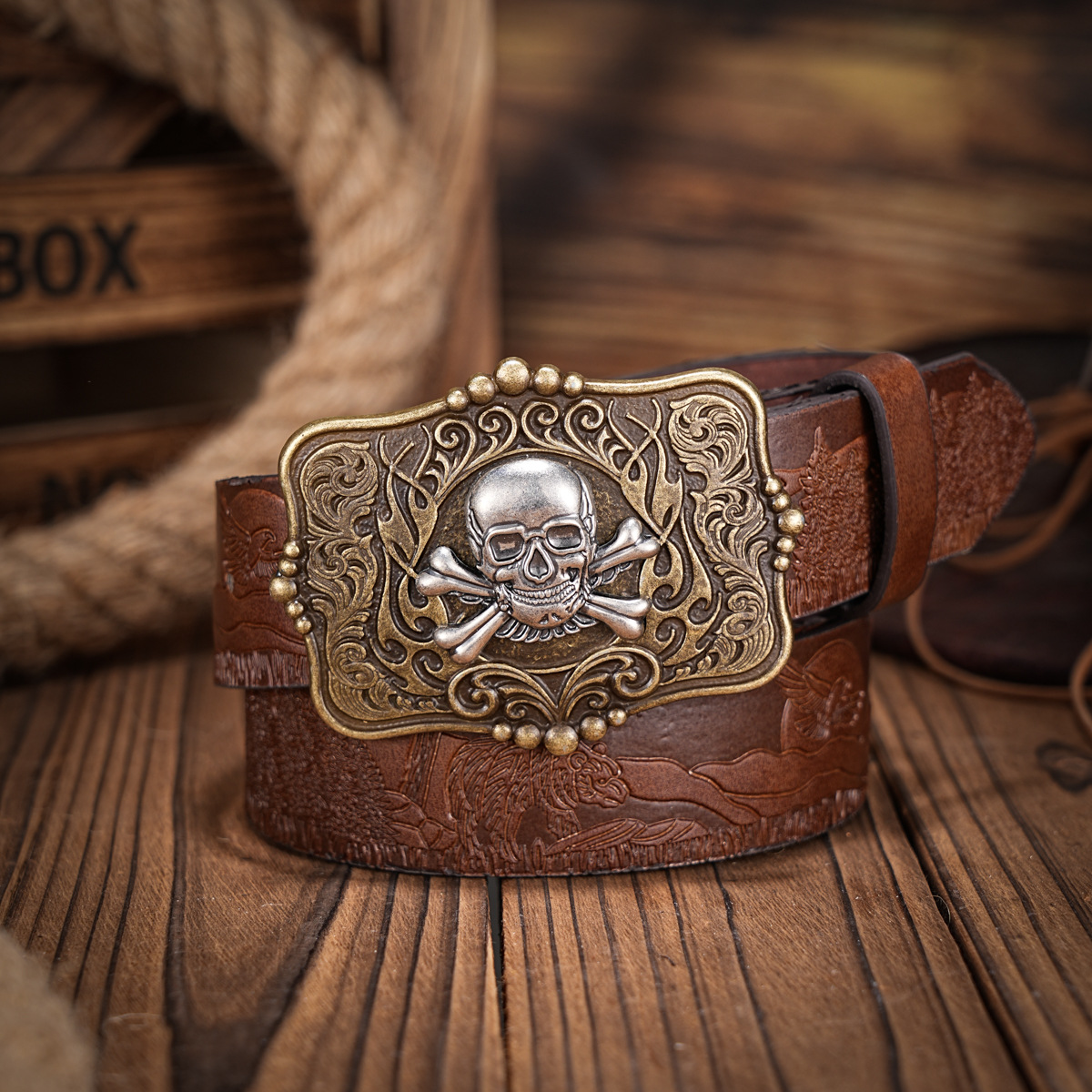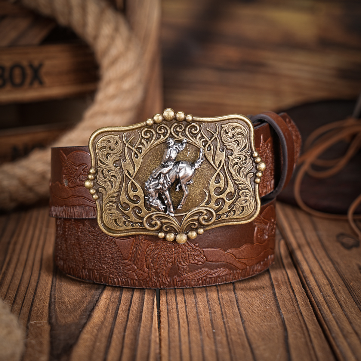 국경 간 새로운 서부 데님 벨트 아마존 국경 대형 플레이트 버클 레트로 남성 펑크 가죽 벨트 민족 스타일