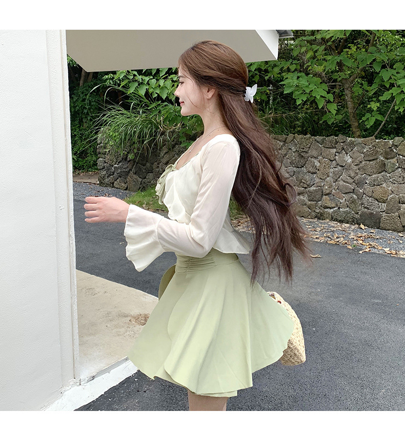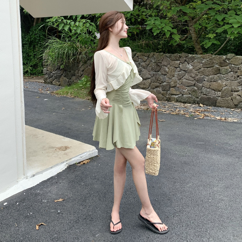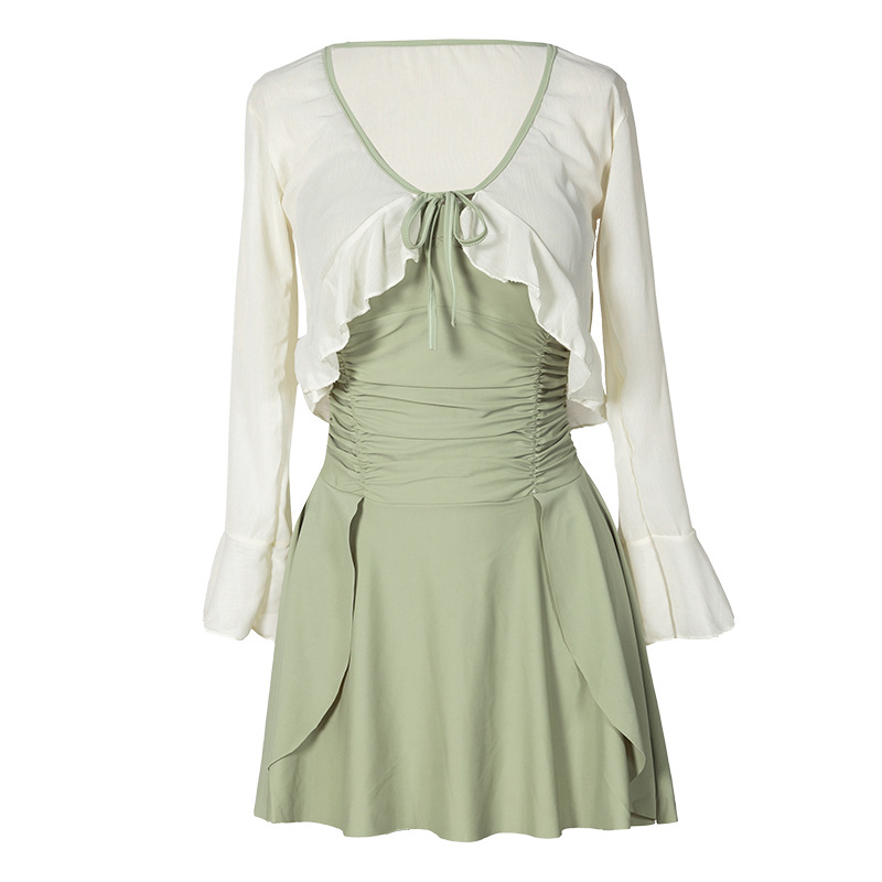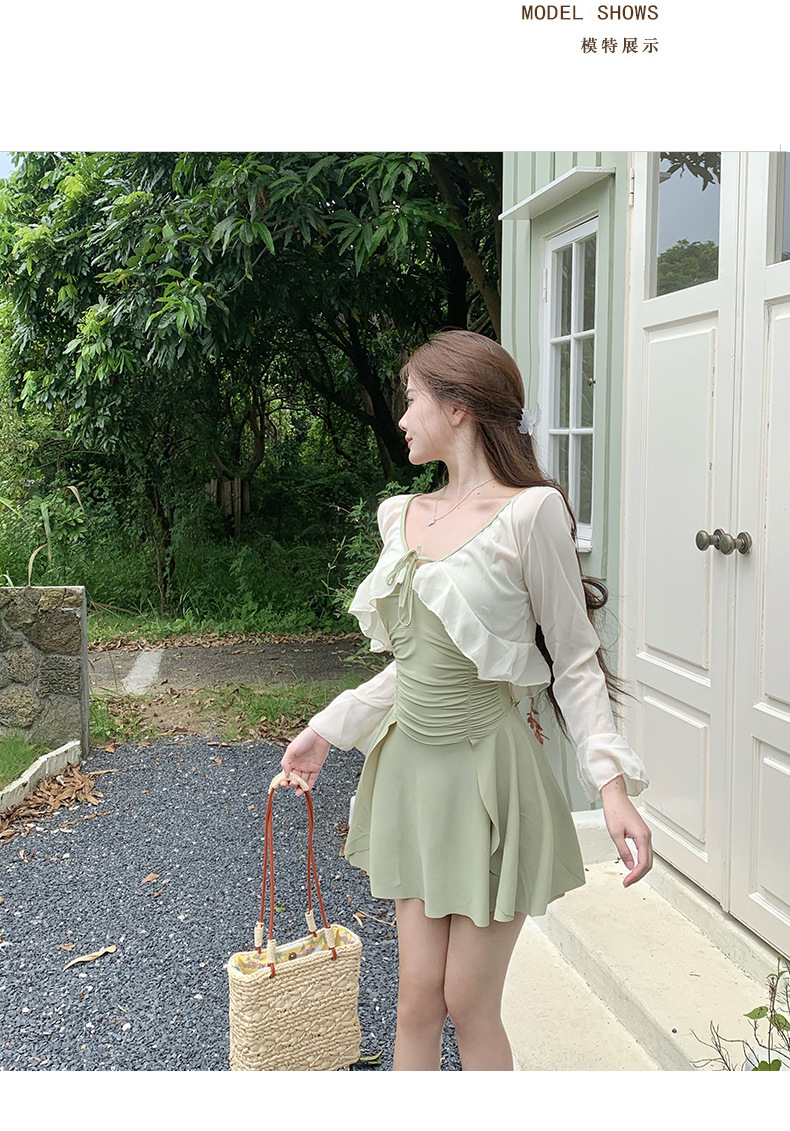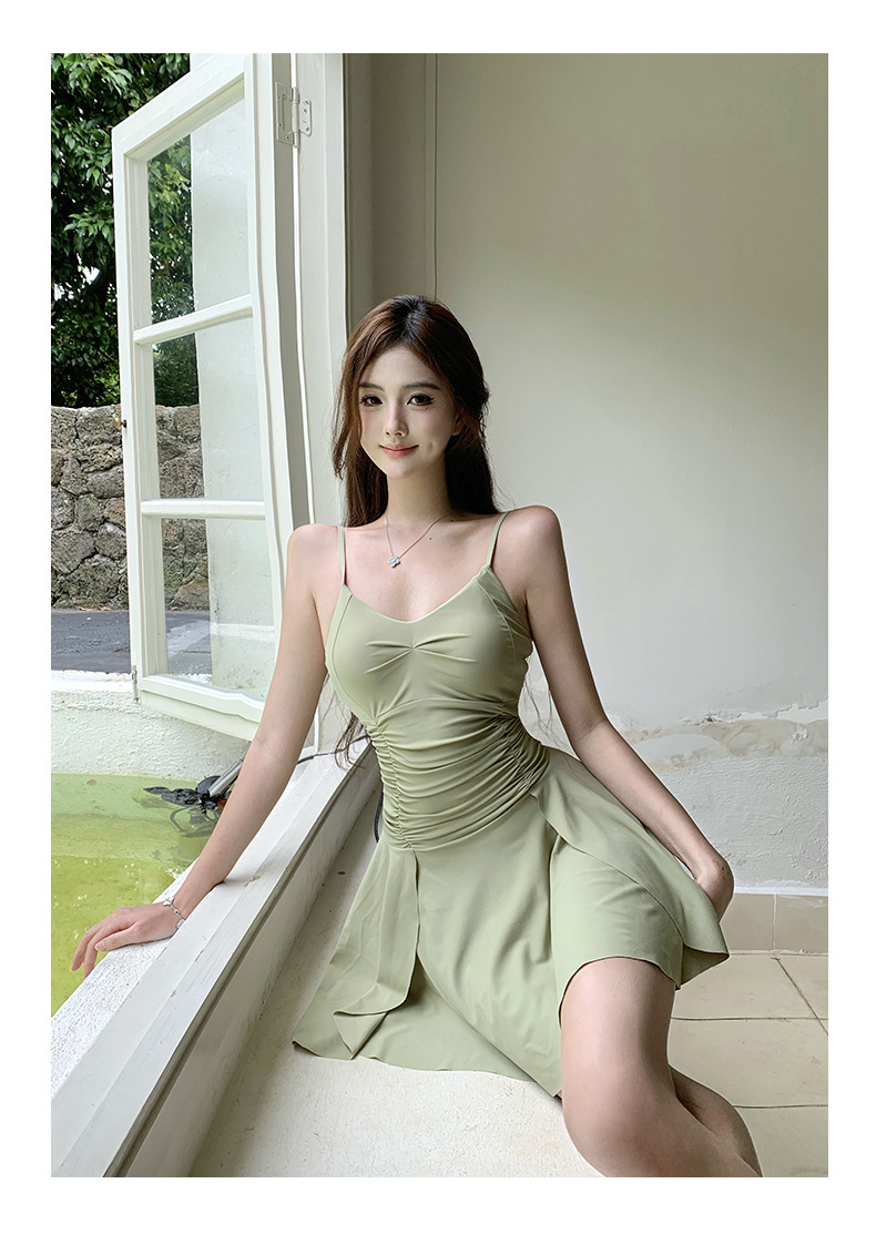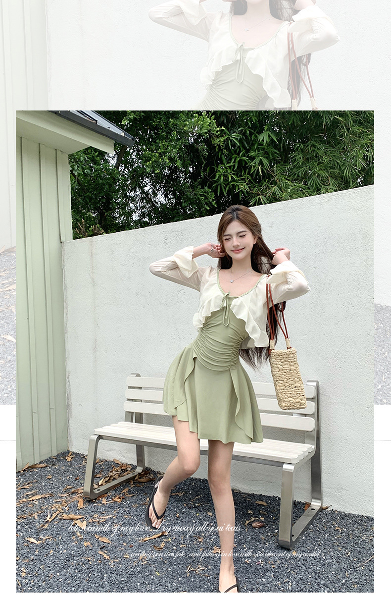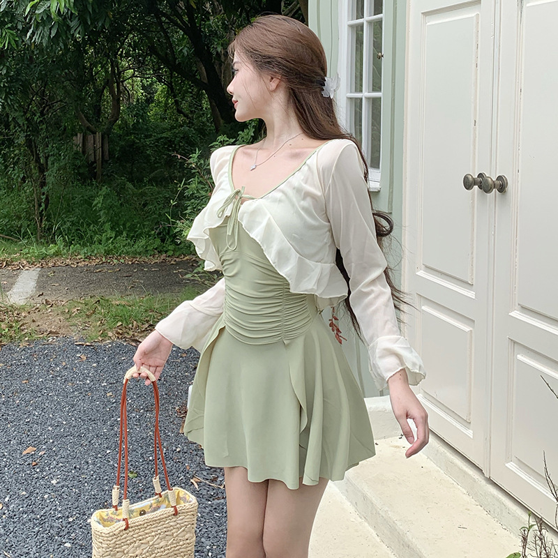 수영복 여성 2025 년 새 섹시 넥 원피스 스커트 육체 커버 슬리밍 나비 인쇄 일본과 한국 스타일 온천 수영복