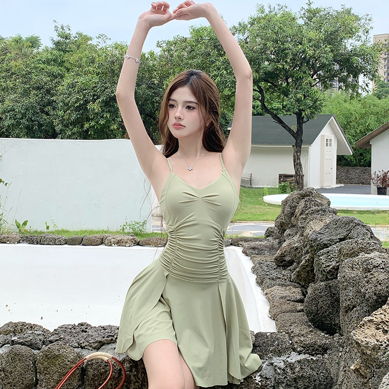 수영복 여성 2025 년 새 섹시 넥 원피스 스커트 육체 커버 슬리밍 나비 인쇄 일본과 한국 스타일 온천 수영복스토어 가기