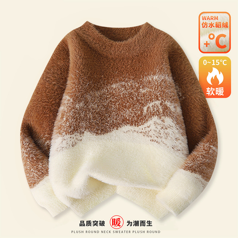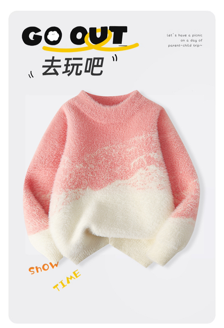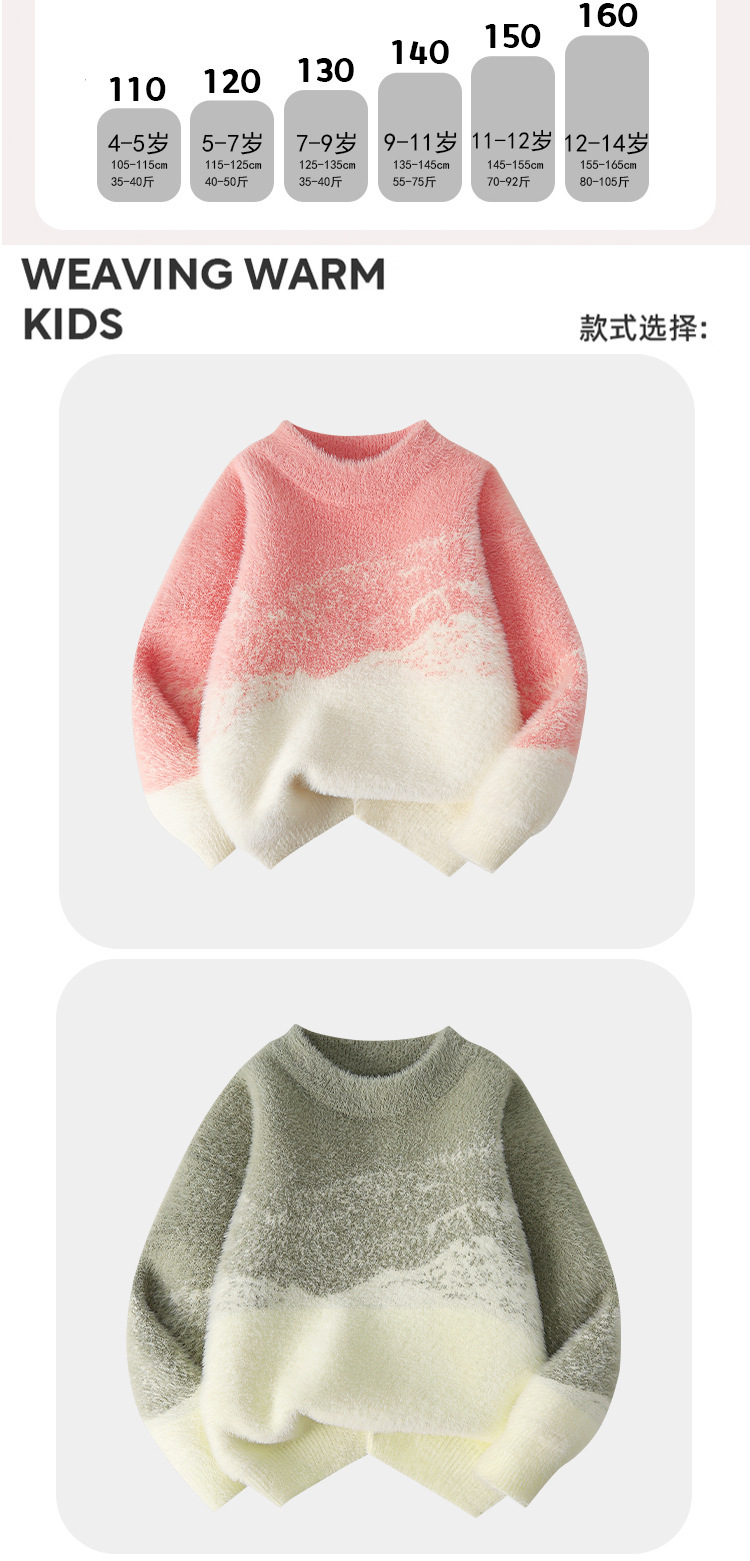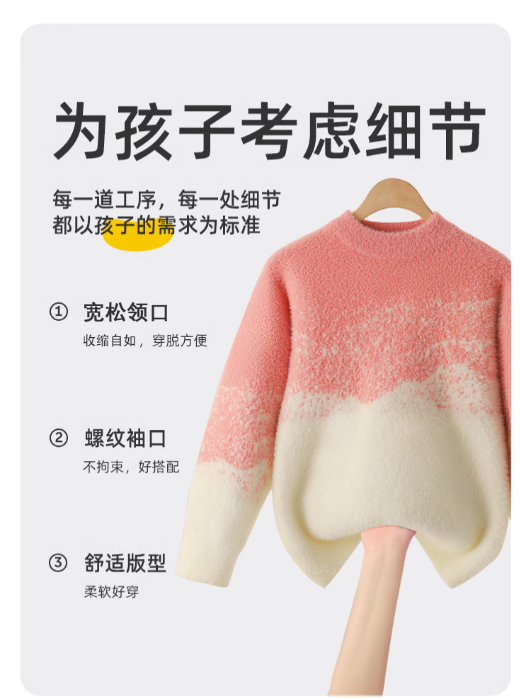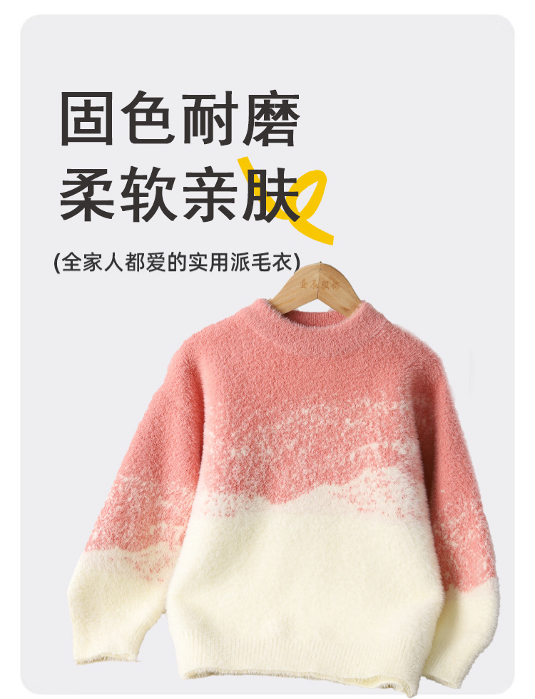 어린이용 밍크 벨벳 스웨터 베이스 레이어 신상 가을 겨울 두꺼운 중대형 어린이용 그라데이션 남아용 니트 상의