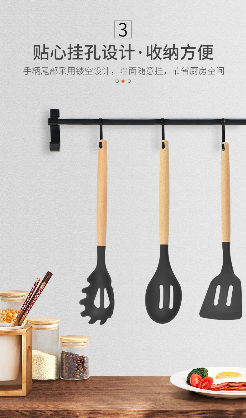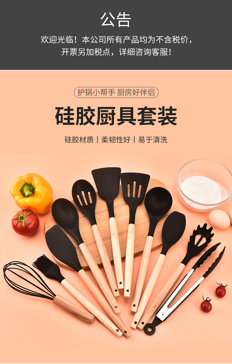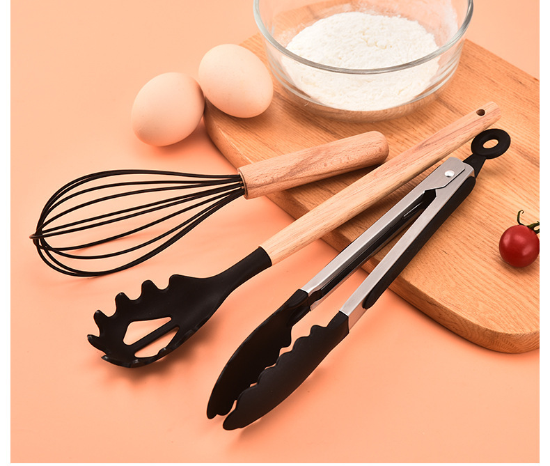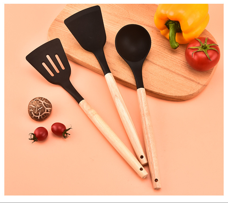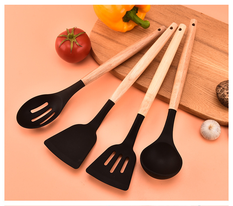 실리콘 조리기구 12 개 세트 나무 손잡이 고온 저항 요리 도구 비 스틱 쿠커 주방 스페이드 스푼 스페이드 12 개 세트스토어 가기