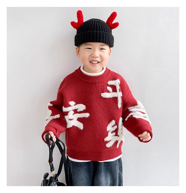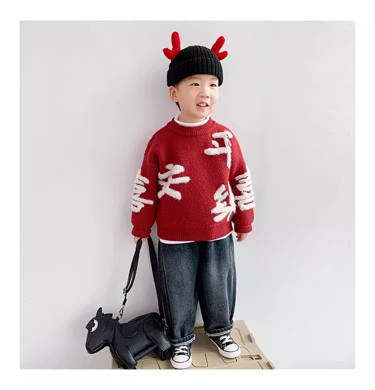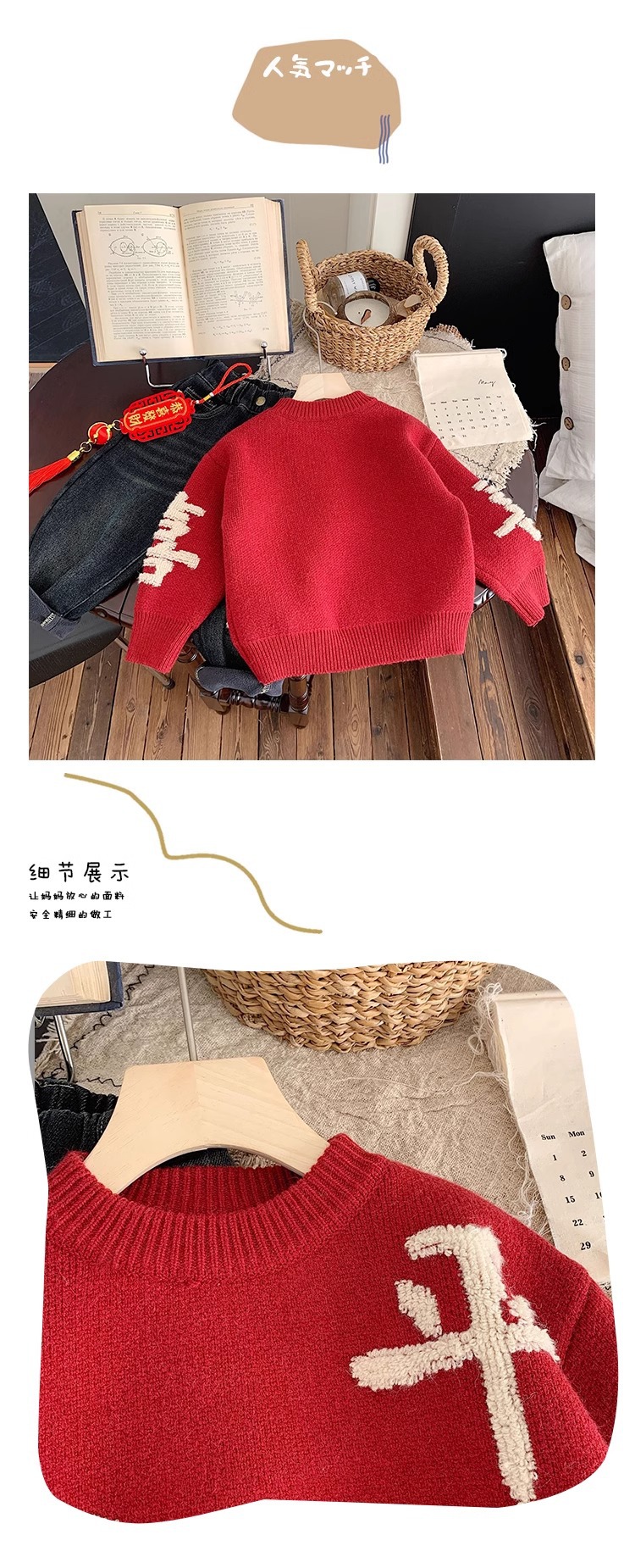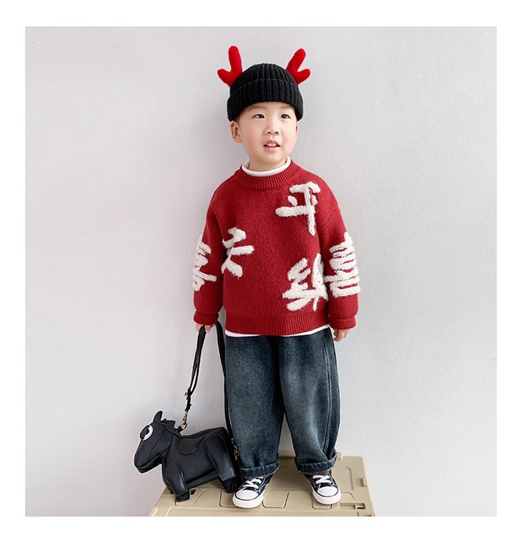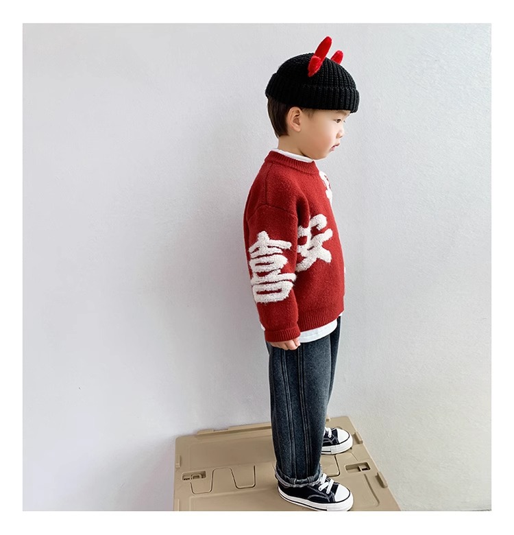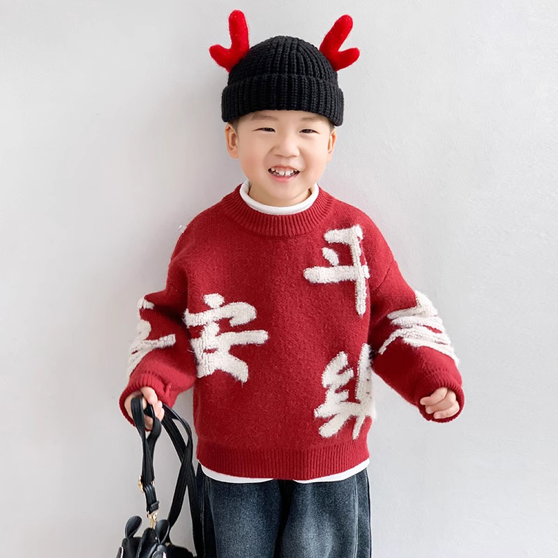 남성과 여성의 어린이 스웨터 가을과 겨울 2024 새로운 국가 트렌드 붉은 축제 아기의 새해 복 스웨터 탑스토어 가기