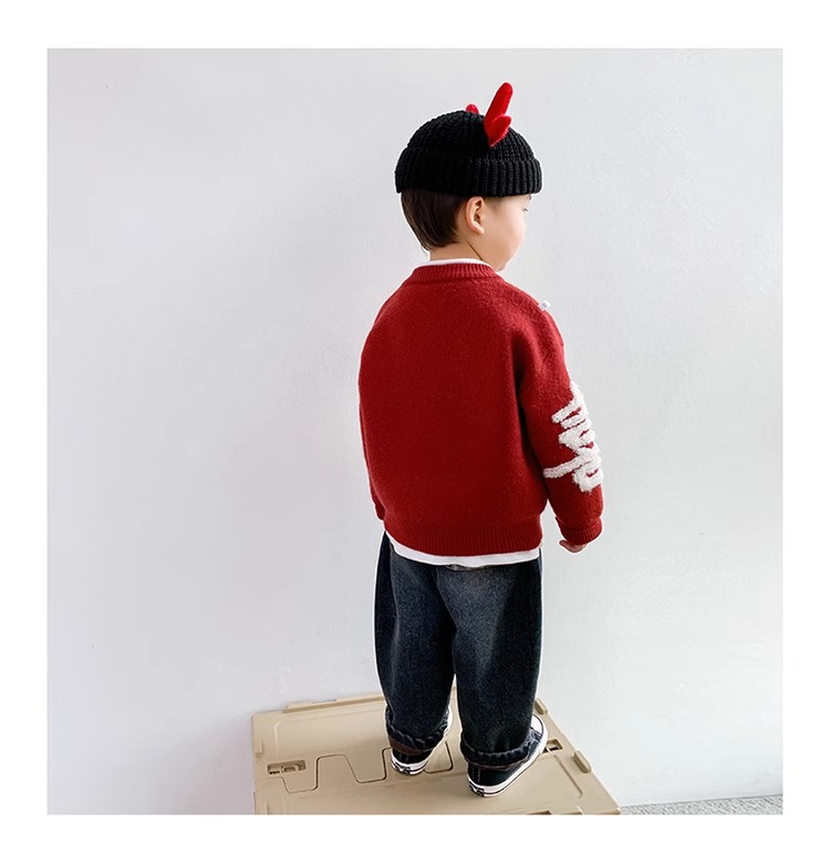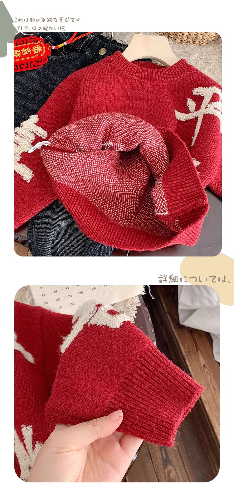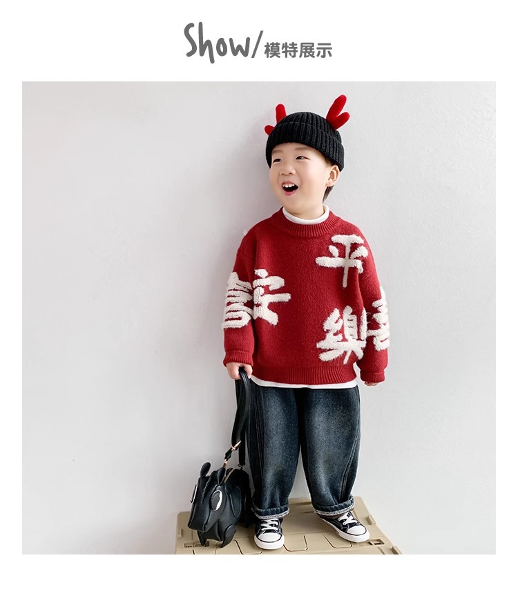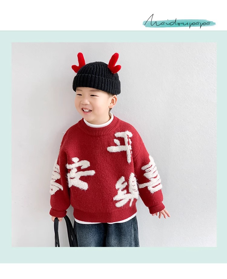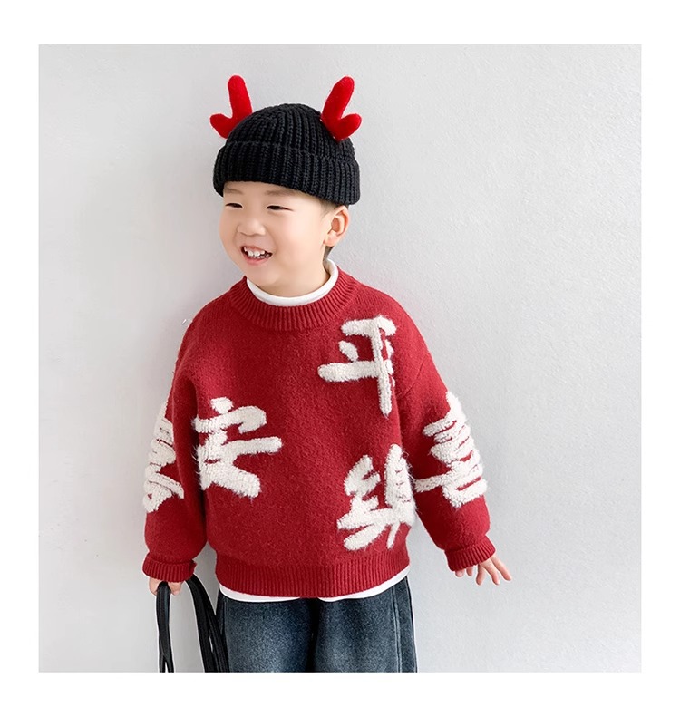 남성과 여성의 어린이 스웨터 가을과 겨울 2024 새로운 국가 트렌드 붉은 축제 아기의 새해 복 스웨터 탑스토어 가기