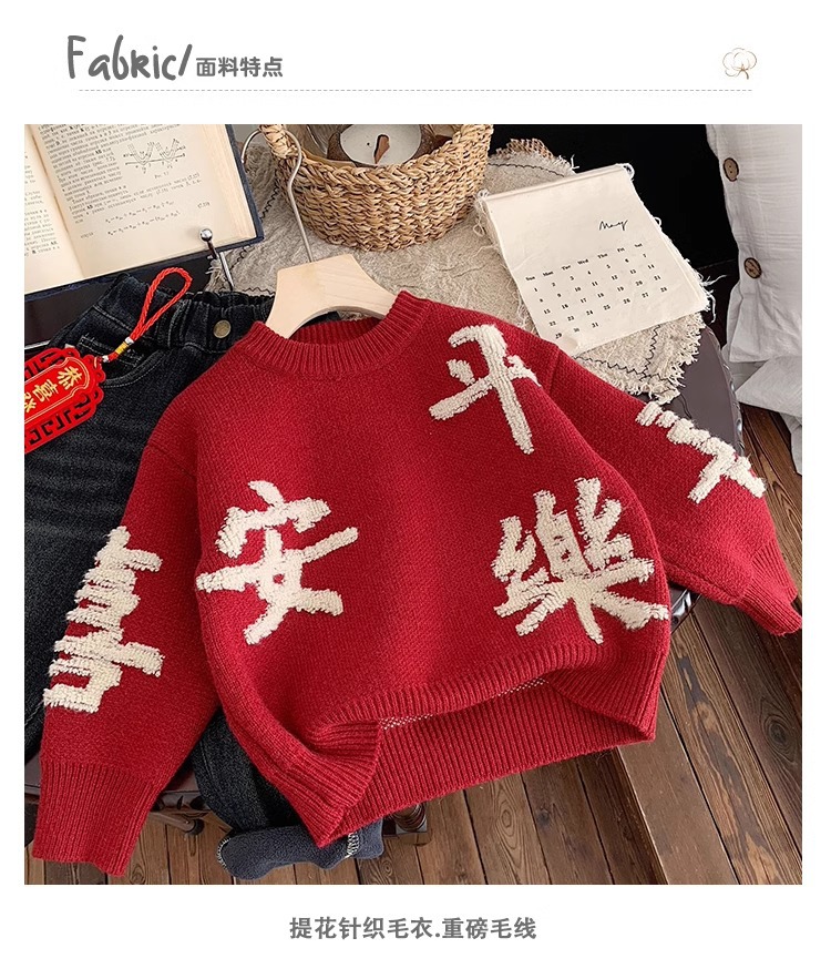 남성과 여성의 어린이 스웨터 가을과 겨울 2024 새로운 국가 트렌드 붉은 축제 아기의 새해 복 스웨터 탑