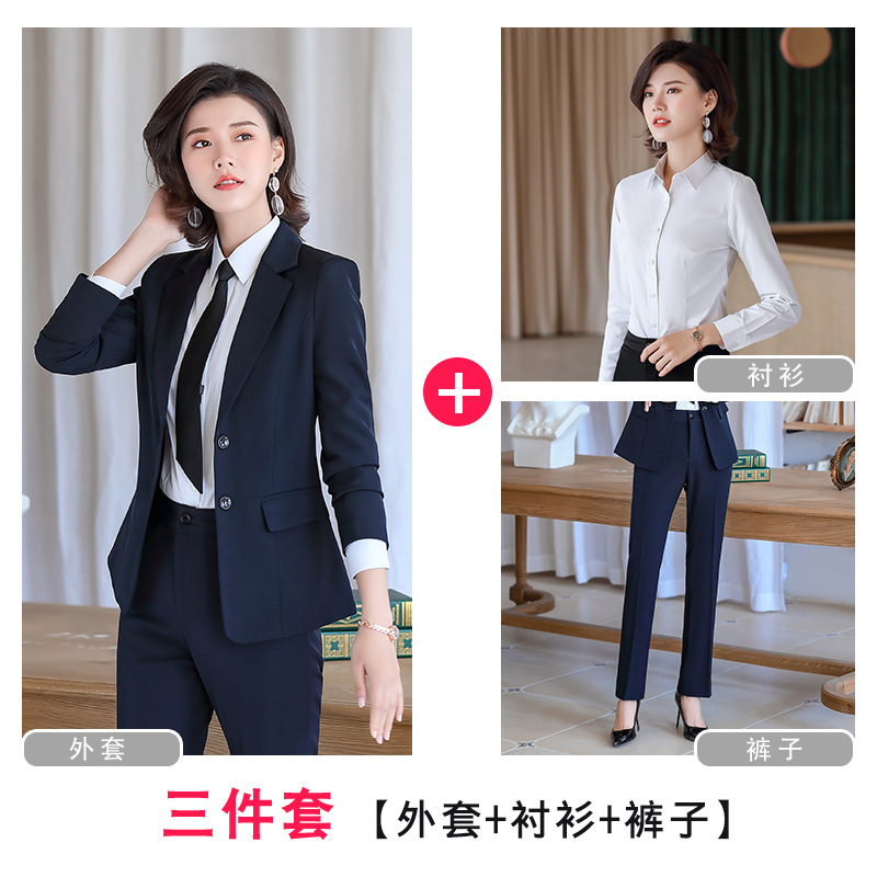 네이비 전문 세트 세트 여성 직장 원피스 패션 작업 기질 작업 옷 대학생 인터뷰 세트