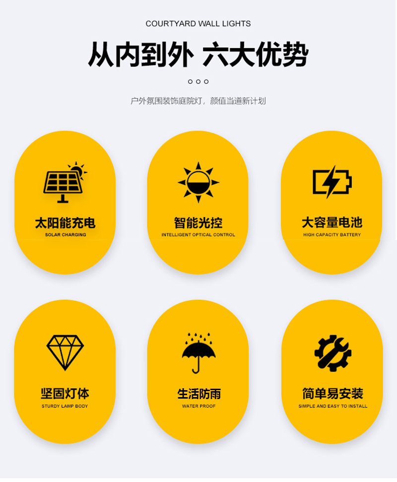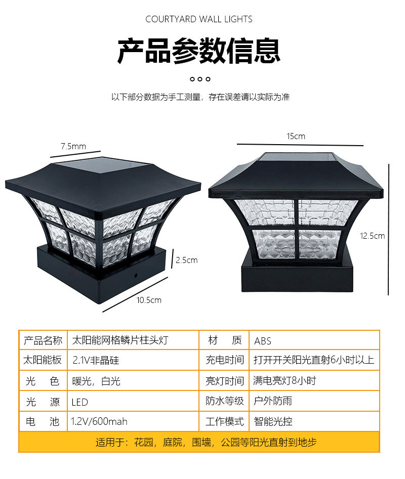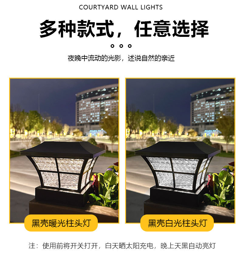 태양 기둥 램프 야외 방수 벽 램프 가구 기둥 문 램프 장식 조경 램프 안뜰 잔디 램프