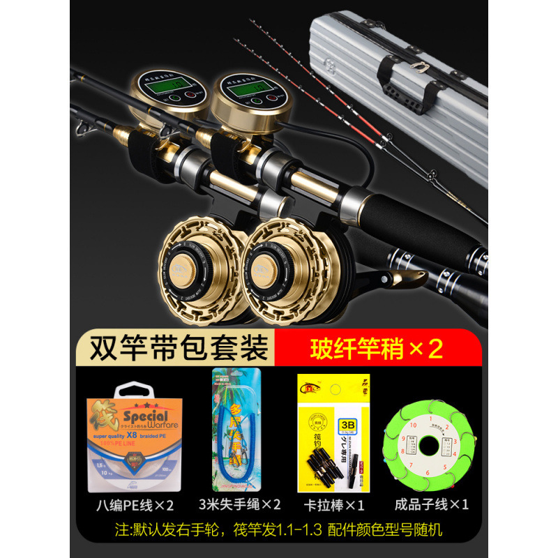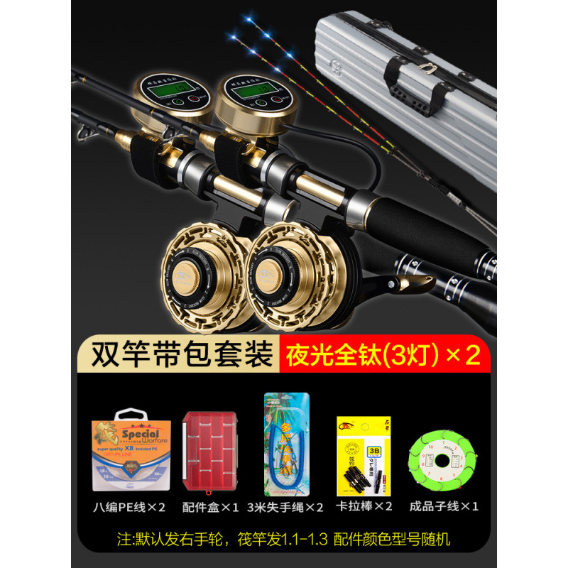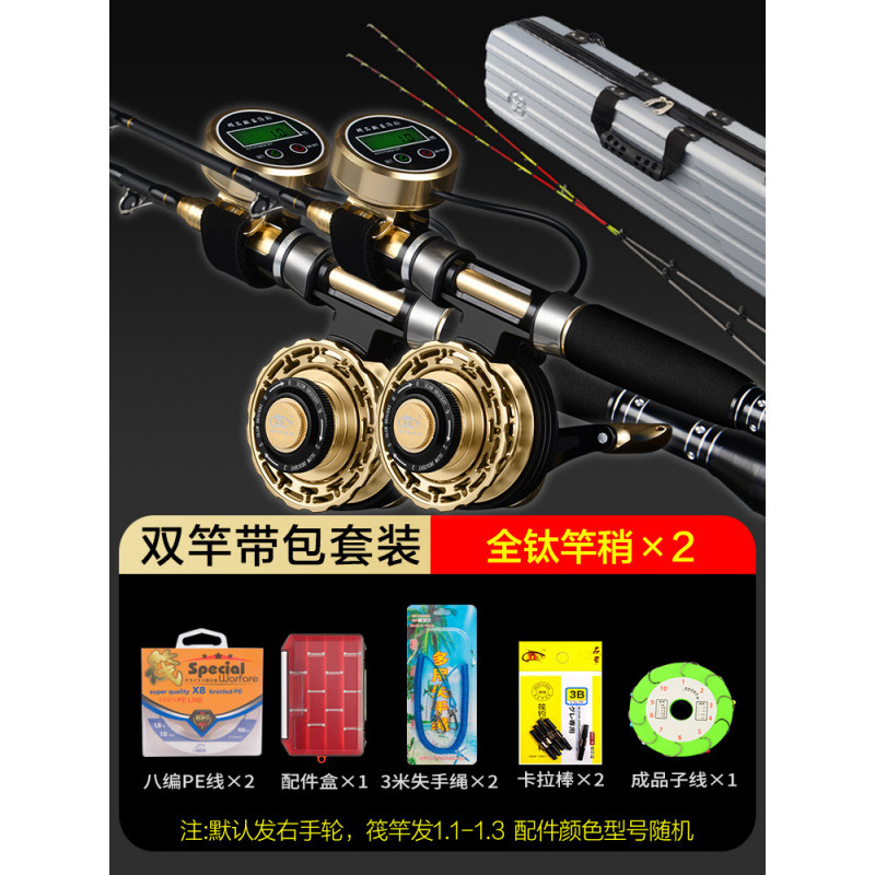 • 더블 폴 + 디지털 디스플레이 목 낚시 릴 + 풀 티타늄 폴(가방 포함)