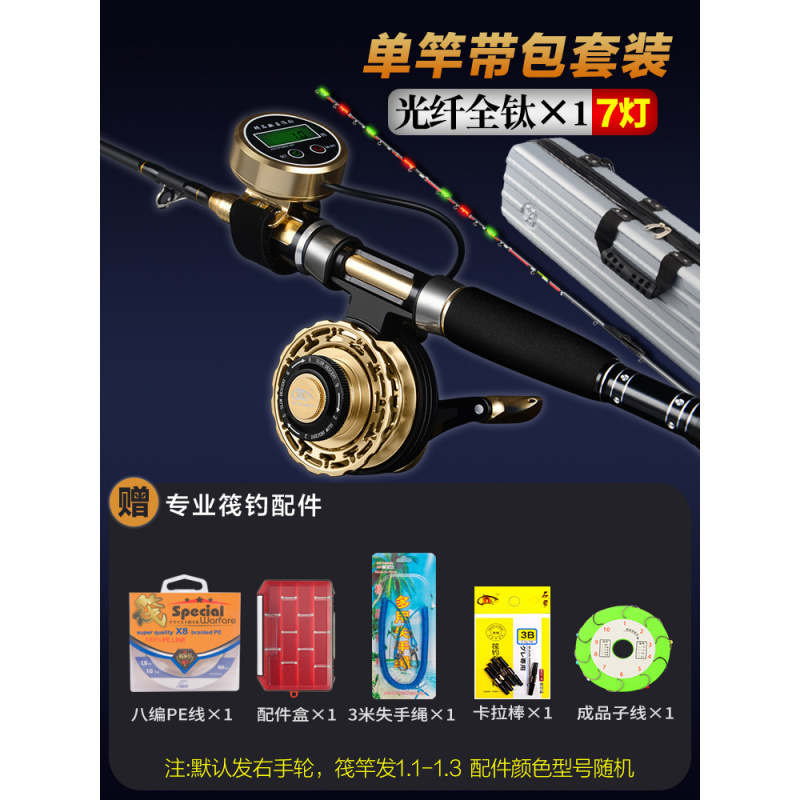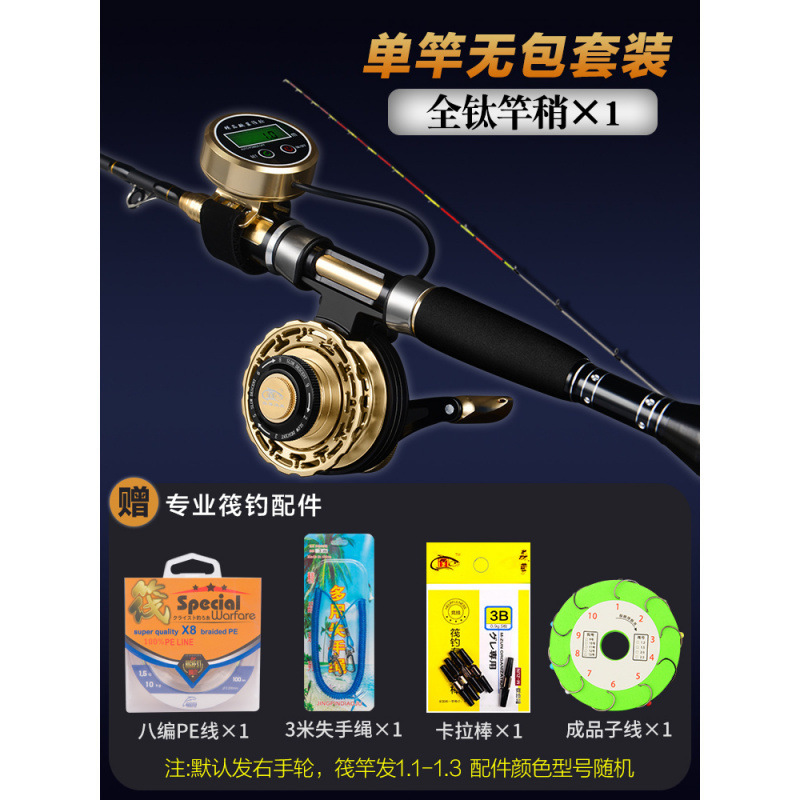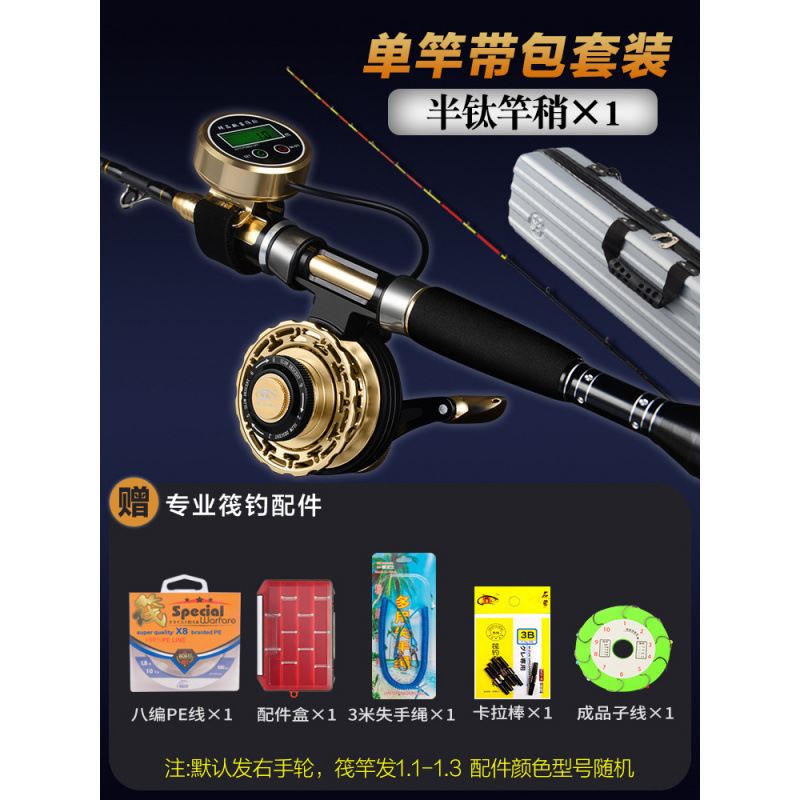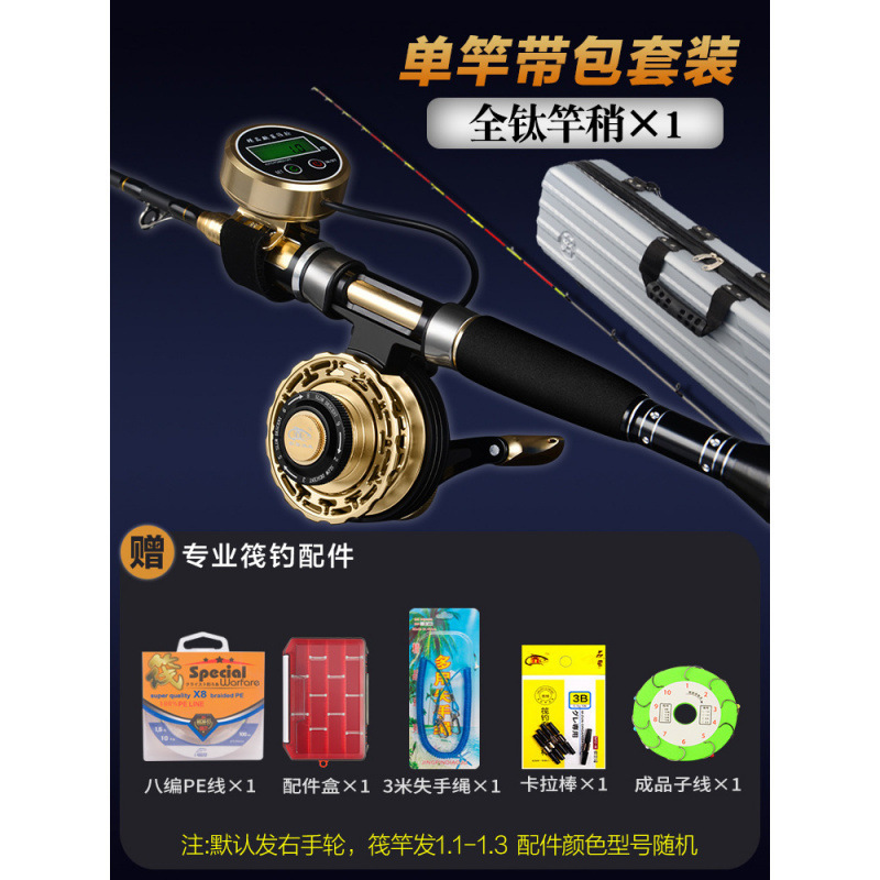 • 단일 극 + 디지털 디스플레이 목 낚시 릴 + 하프 티타늄 폴(로드 백 포함)