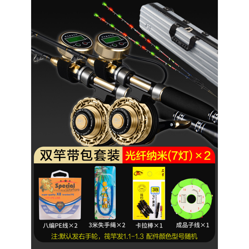 • 이중 극 + 디지털 디스플레이 목 낚시 릴 + 7개의 가벼운 섬유 나노(가방 포함)