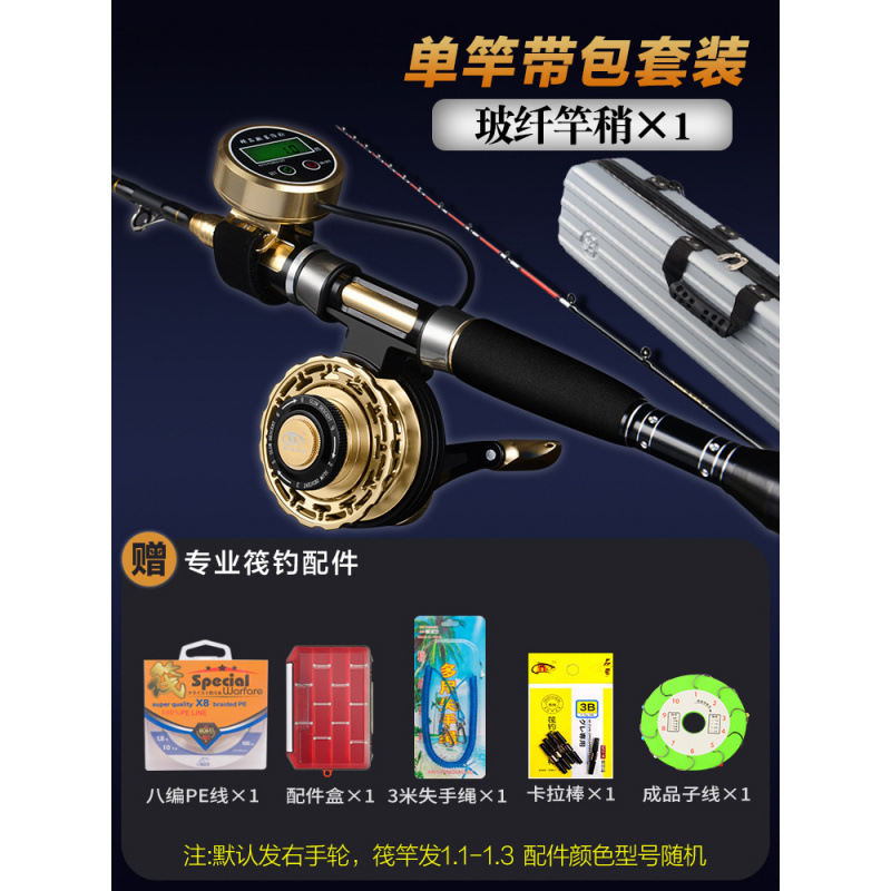 • 단일 극 + 디지털 디스플레이 목 낚시 릴 + 유리 섬유 극 (가방 포함)
