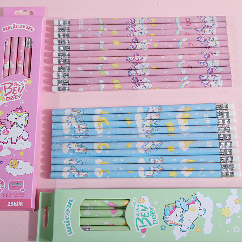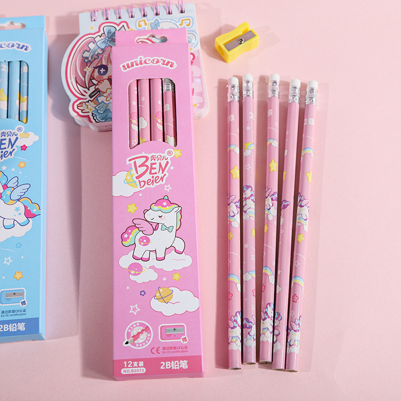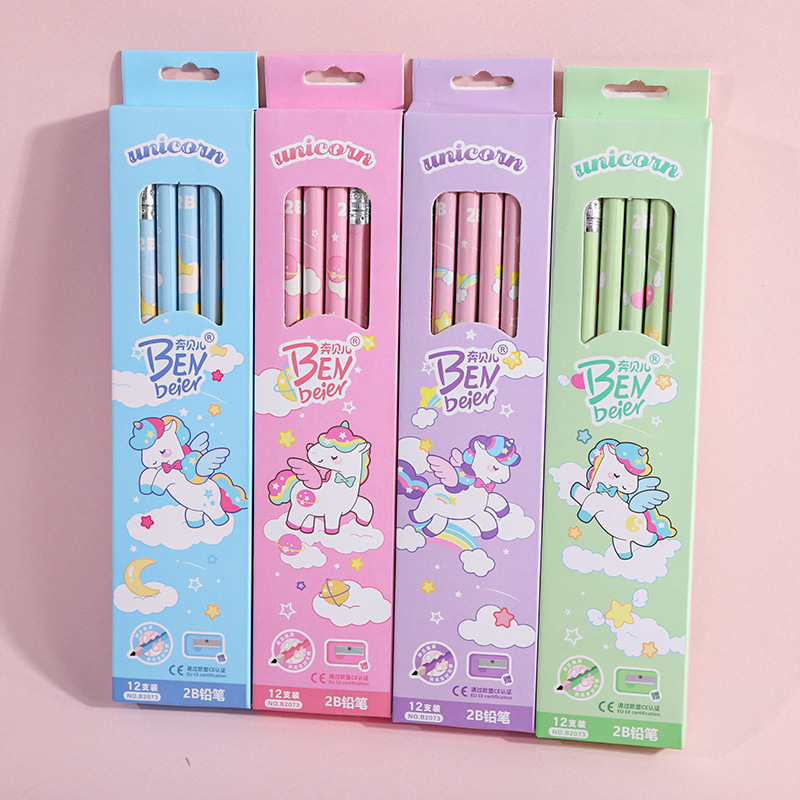 만화 귀여운 초등학교 연필 2b 연필 12 상자 상자 가죽 연필 깎이 학생 문구 연필스토어 가기