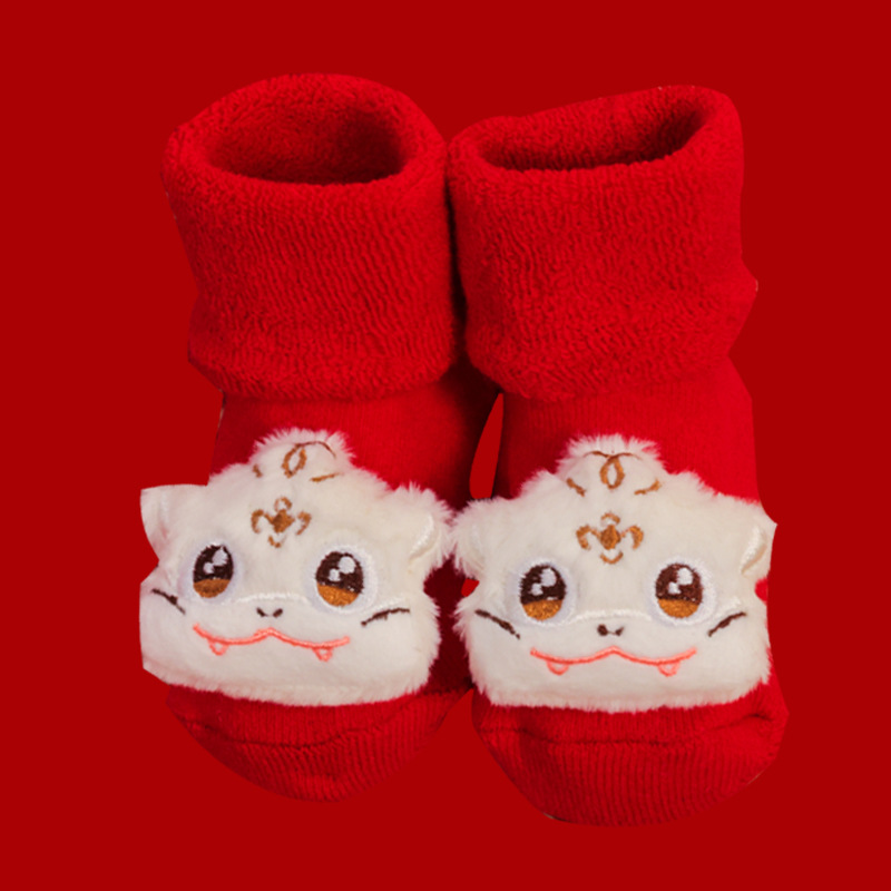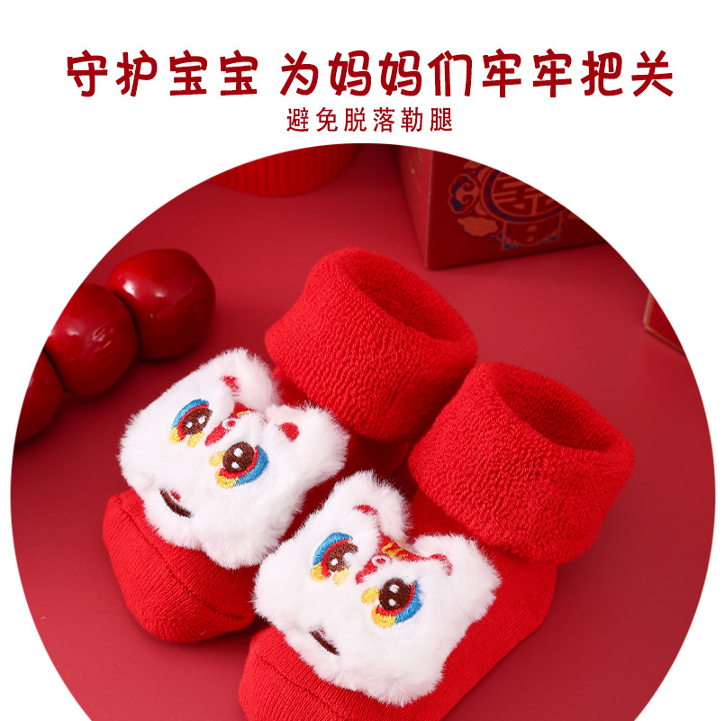 가을 겨울 두꺼운 테리 빨간색 양말 아기 양말 새해 양말 신생아 뱀의 해 용의 해 한 살짜리 바닥 양말