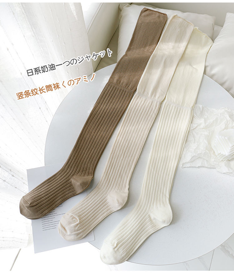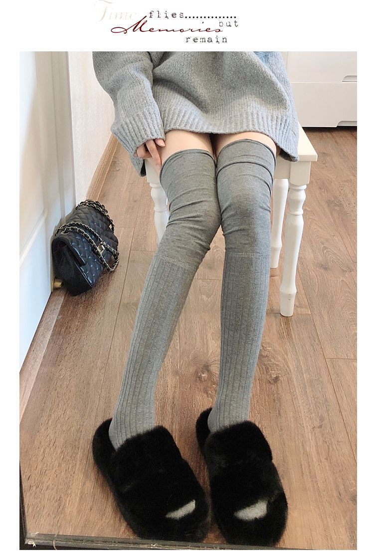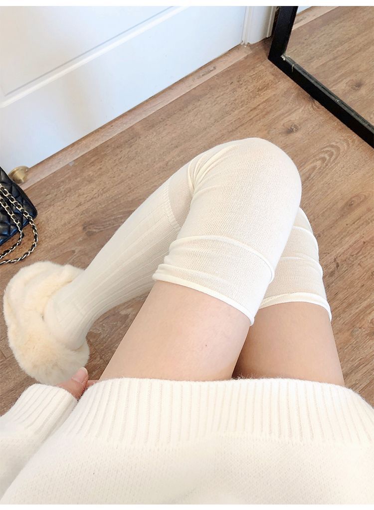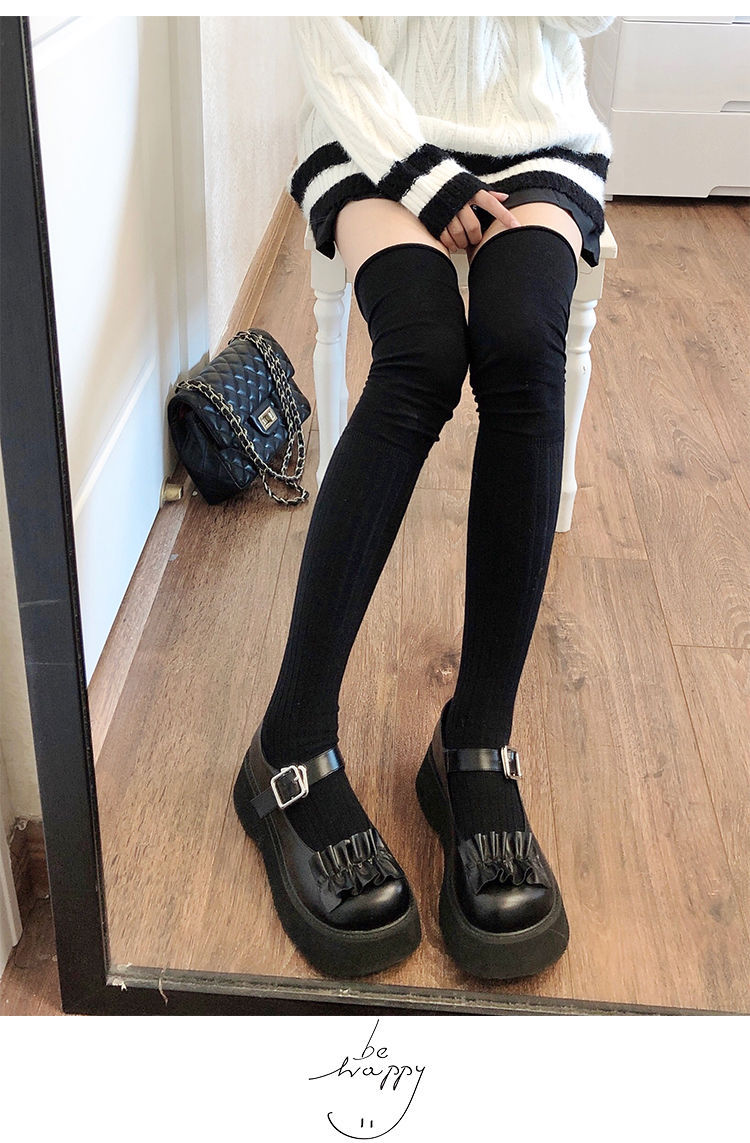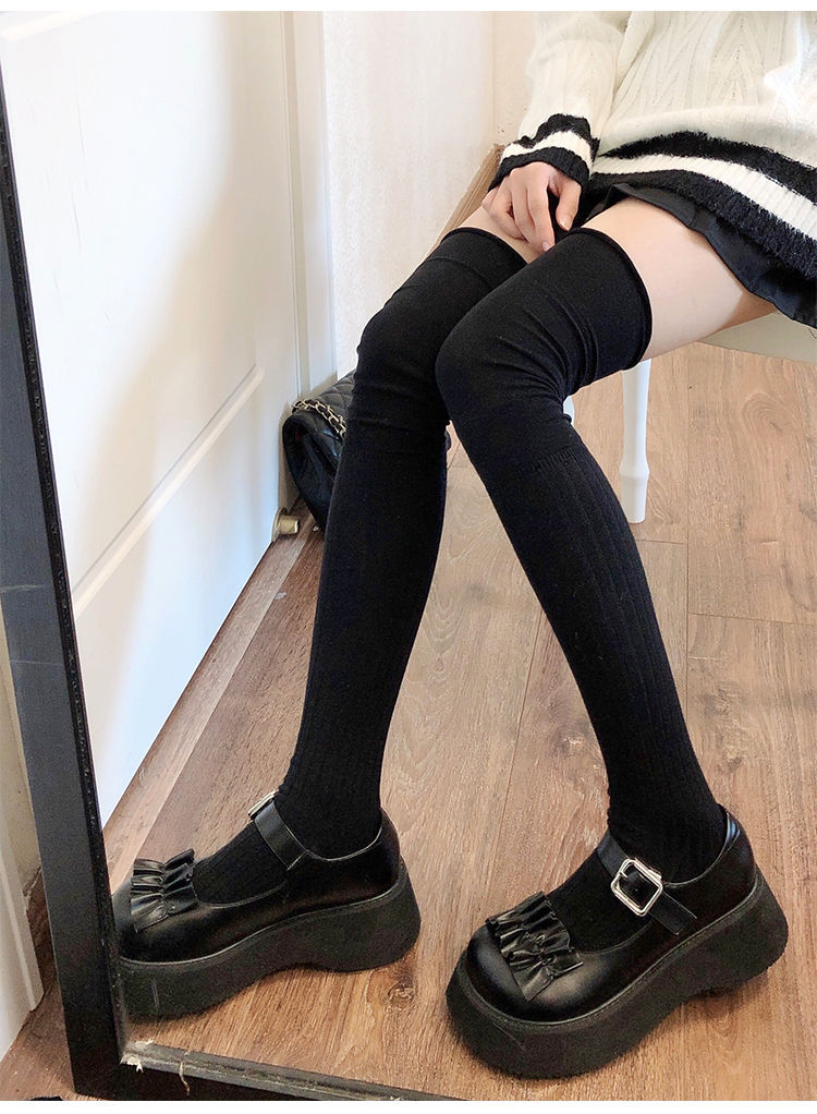 주름 쌓인 스타킹 얇은 단색 순수한 욕망 달콤한 바느질 여성용 무릎 위 높은 다리 스타킹