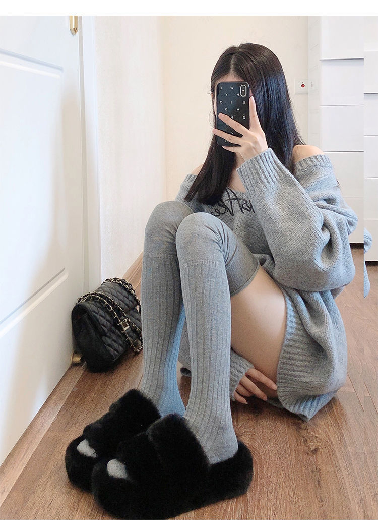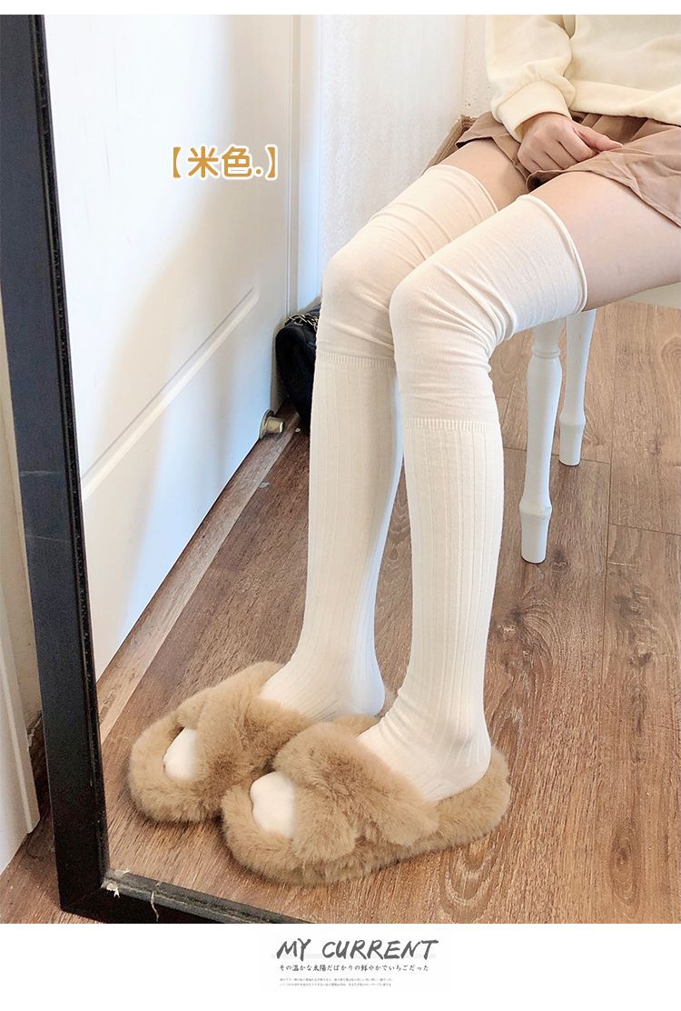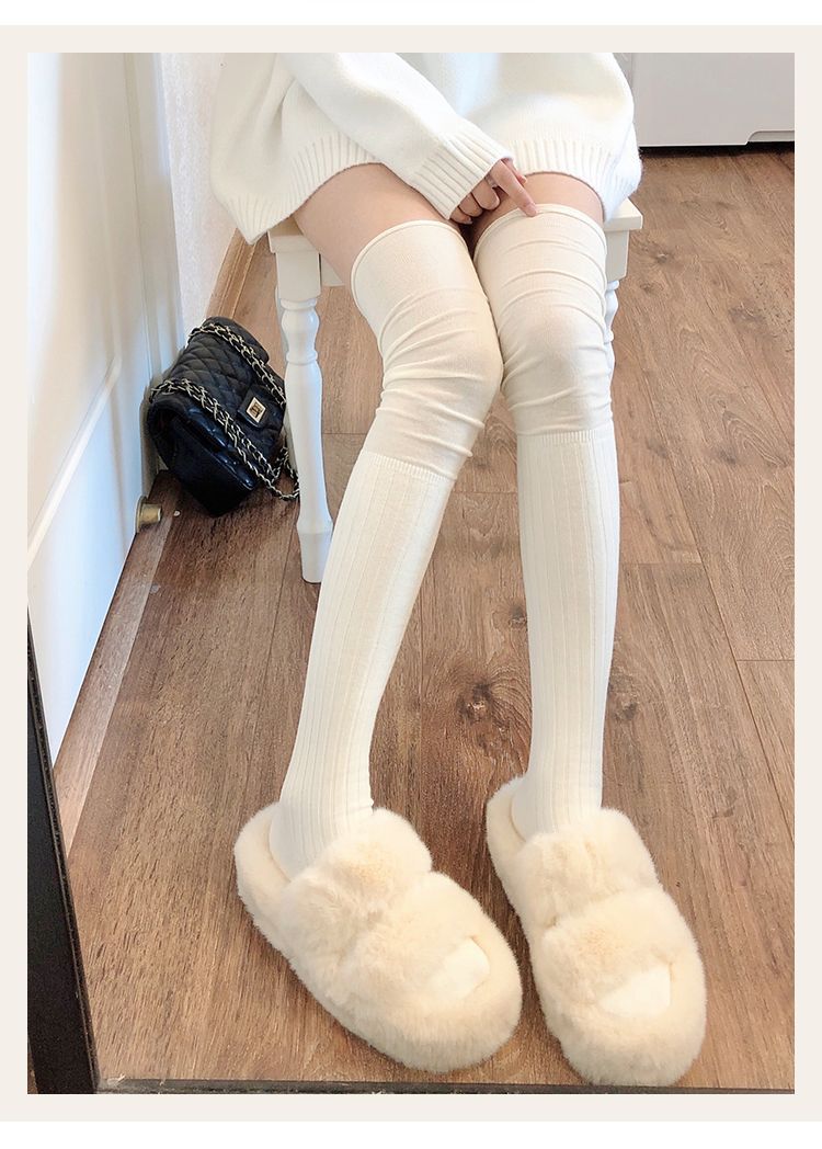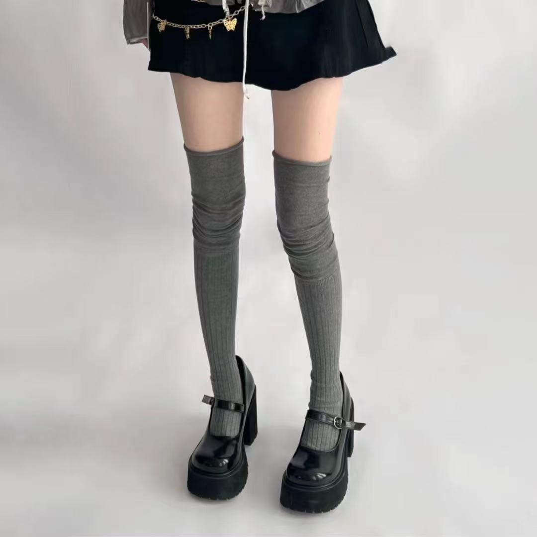 주름 쌓인 스타킹 얇은 단색 순수한 욕망 달콤한 바느질 여성용 무릎 위 높은 다리 스타킹