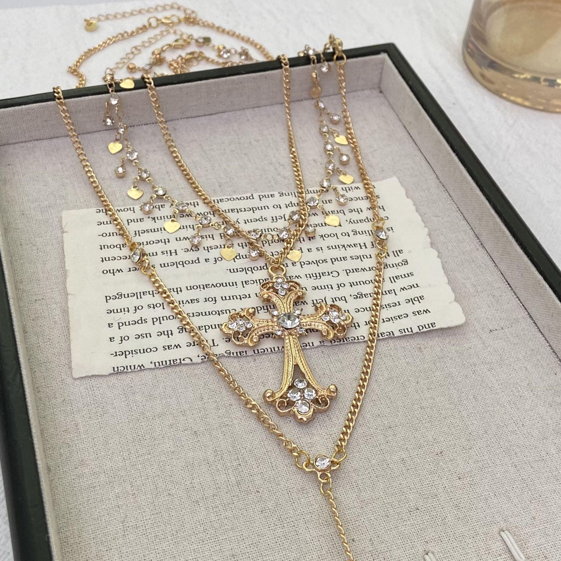 가벼운 럭셔리 틈새 레트로 바로크 스타일 더블 레이어 쌓인 크로스 목걸이 여성의 가을과 겨울 올 매치 하이 엔드 센스 모직 체인