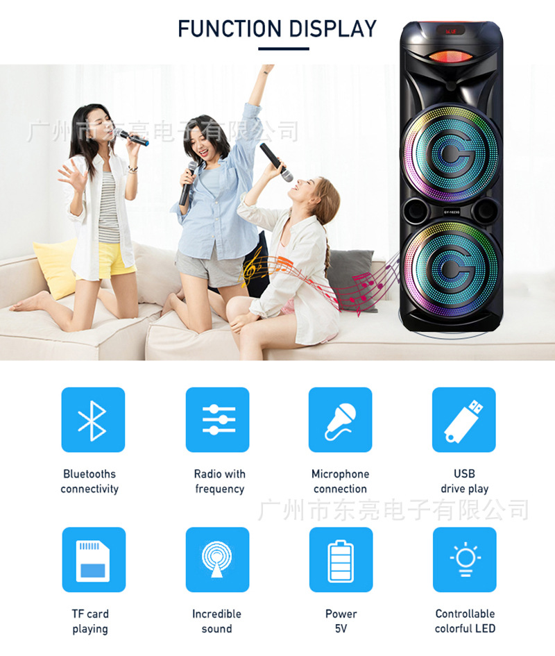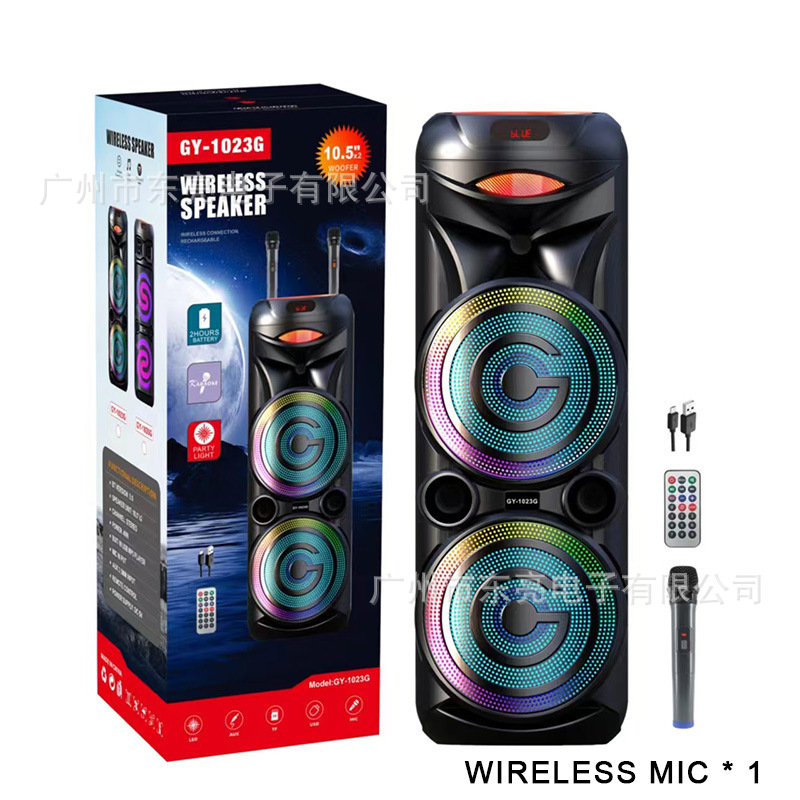 GY-1023G Cross border new double 10 inch square dance sound microphone inserted into K song subwoofer Bluetooth large speaker wireless microphone
