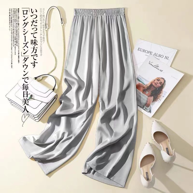 우아한 실키 아세테이트 새틴 아이스 실크 넓은 다리 바지 여성의 2024 여름 새로운 높은 허리 캐주얼 스트레이트 바지 바지