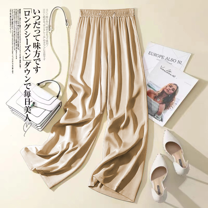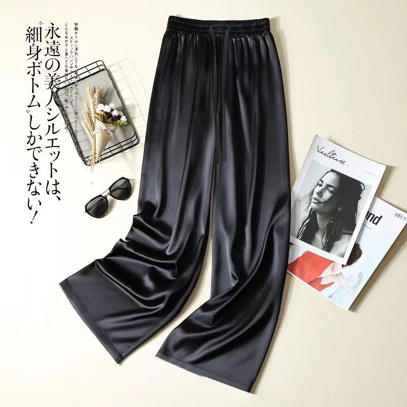 우아한 실키 아세테이트 새틴 아이스 실크 넓은 다리 바지 여성의 2024 여름 새로운 높은 허리 캐주얼 스트레이트 바지 바지스토어 가기