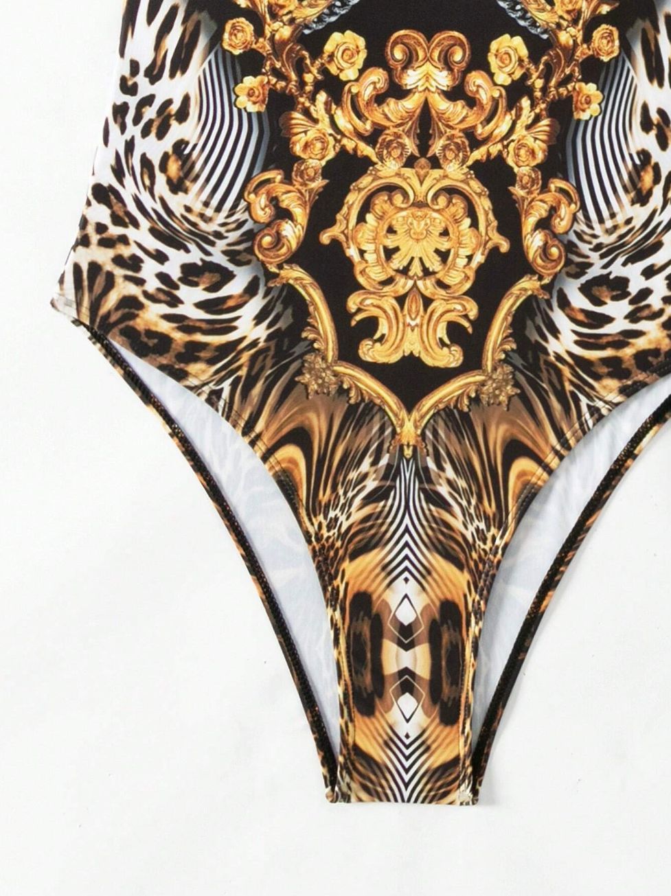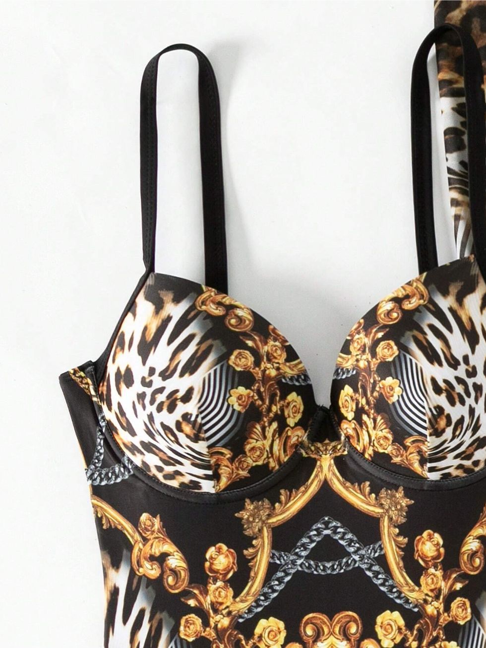 크로스 숄더 스트랩 스틸 지원은 슬림 스플릿 비키니 세트 스커트 복고풍 인쇄 유럽과 미국에 국경 간 수출을 모았습니다.스토어 가기