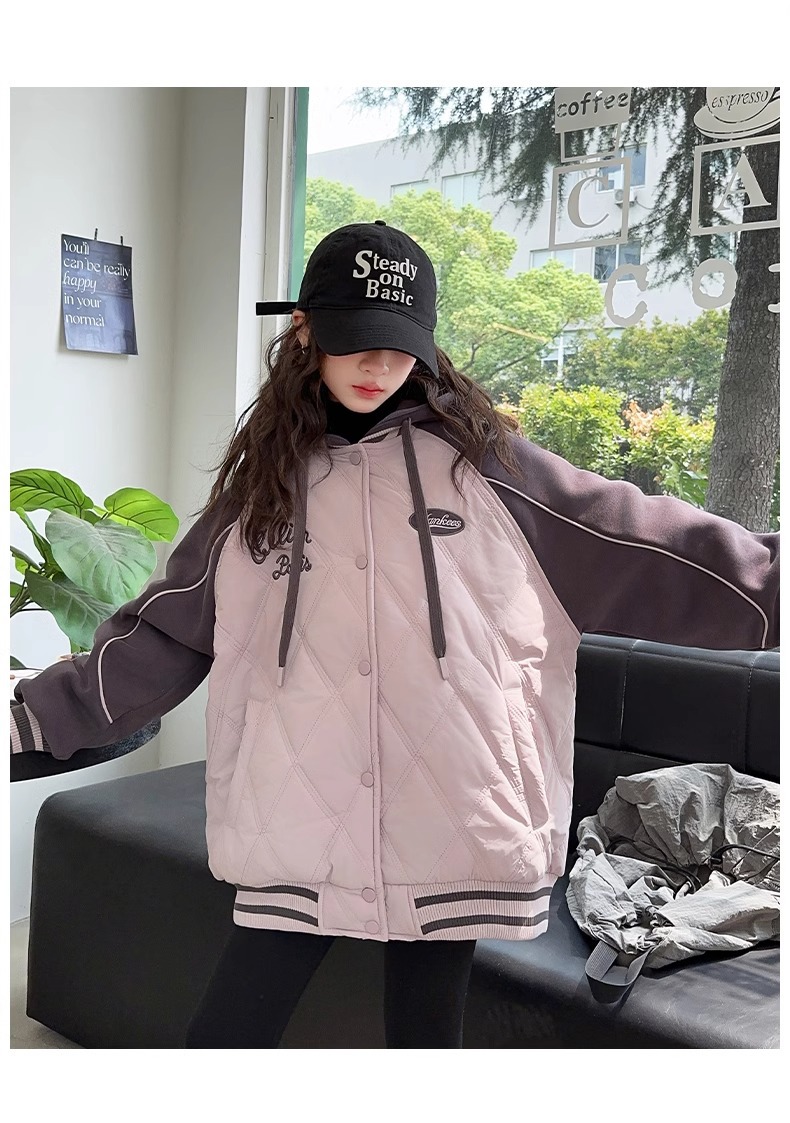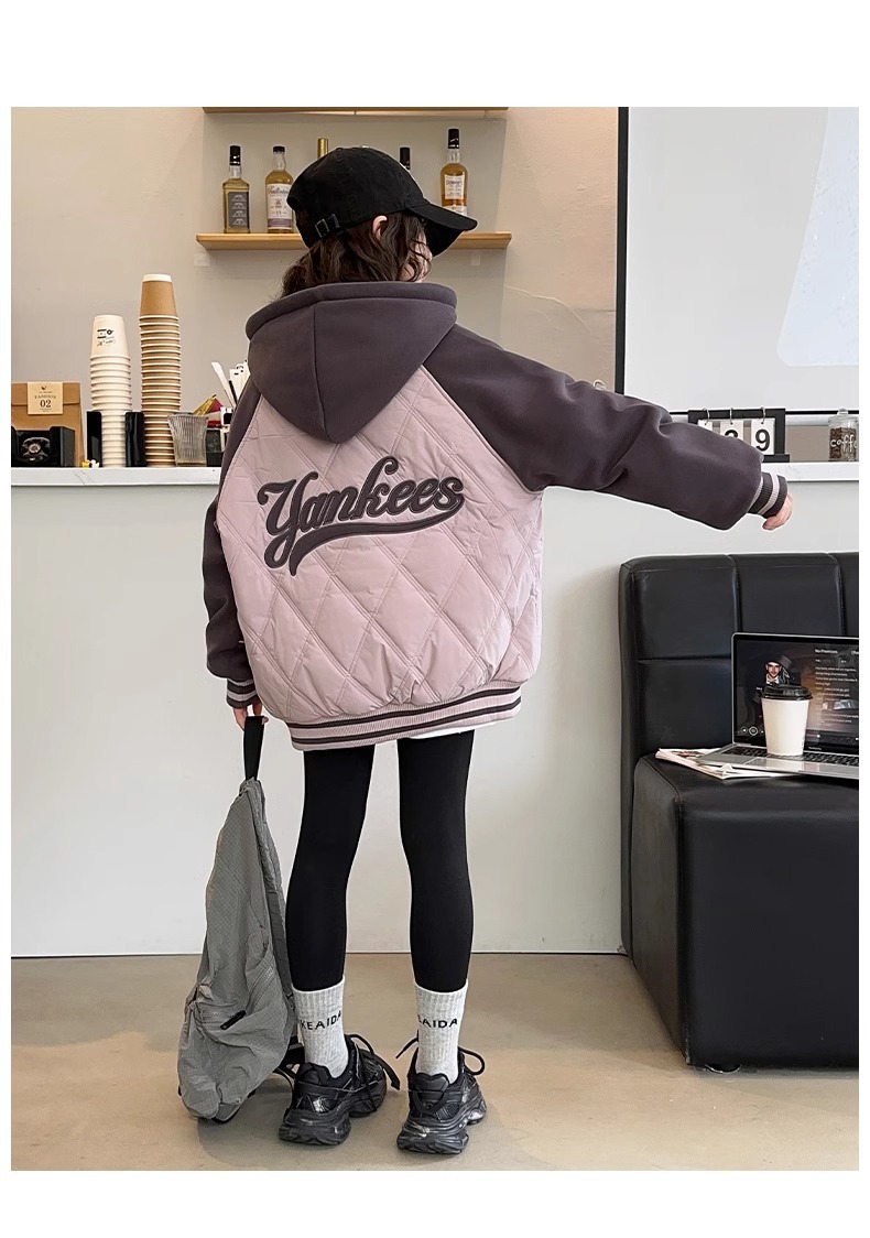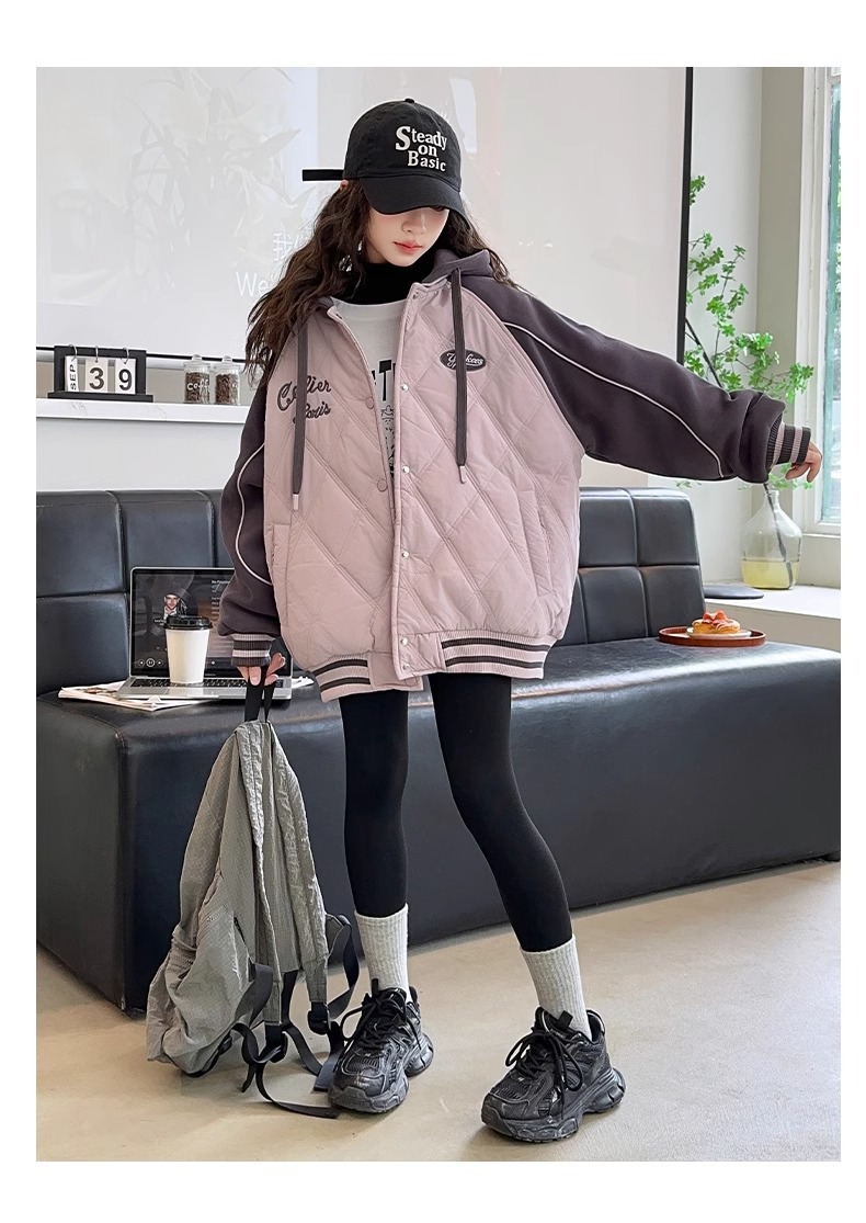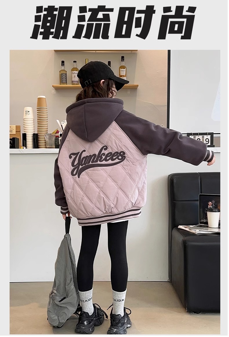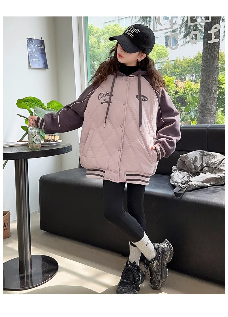 소녀들의 두꺼운 야구 세트 가을과 겨울 소녀들의 겨울은 경량 면화 옷을 입고 큰 아이들의 겨울 퀼트 코트 후드 트렌디스토어 가기