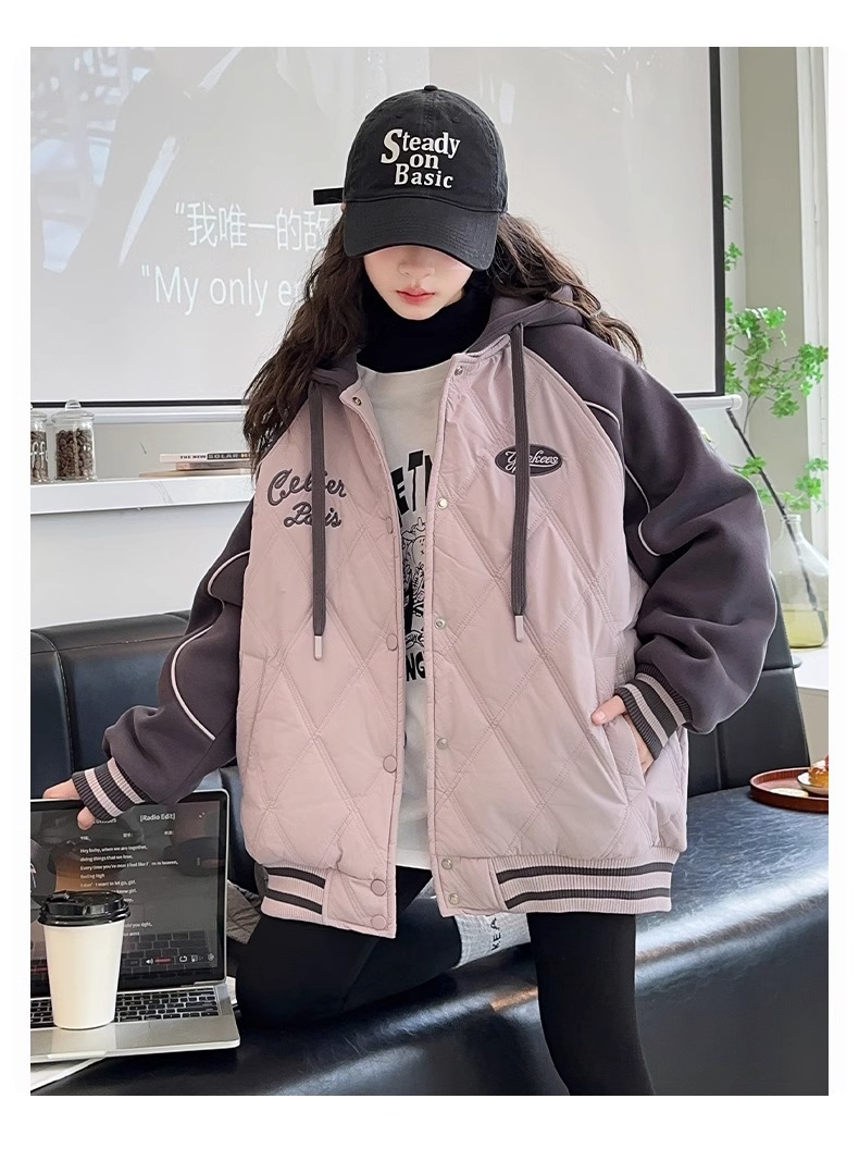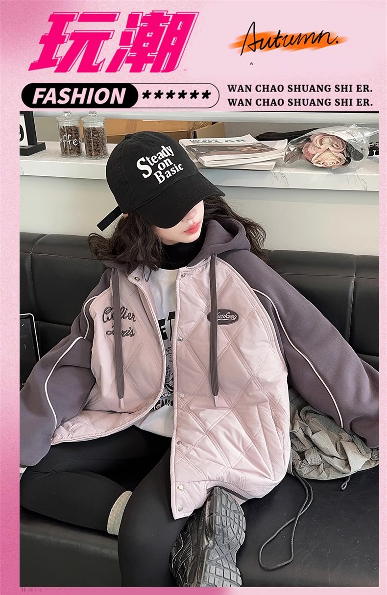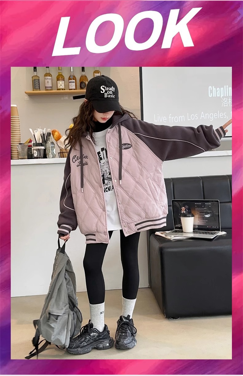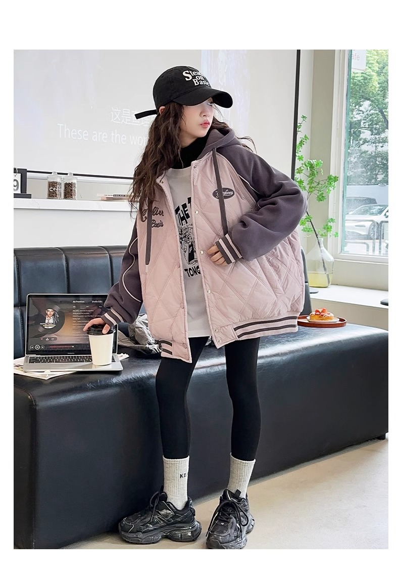 소녀들의 두꺼운 야구 세트 가을과 겨울 소녀들의 겨울은 경량 면화 옷을 입고 큰 아이들의 겨울 퀼트 코트 후드 트렌디스토어 가기
